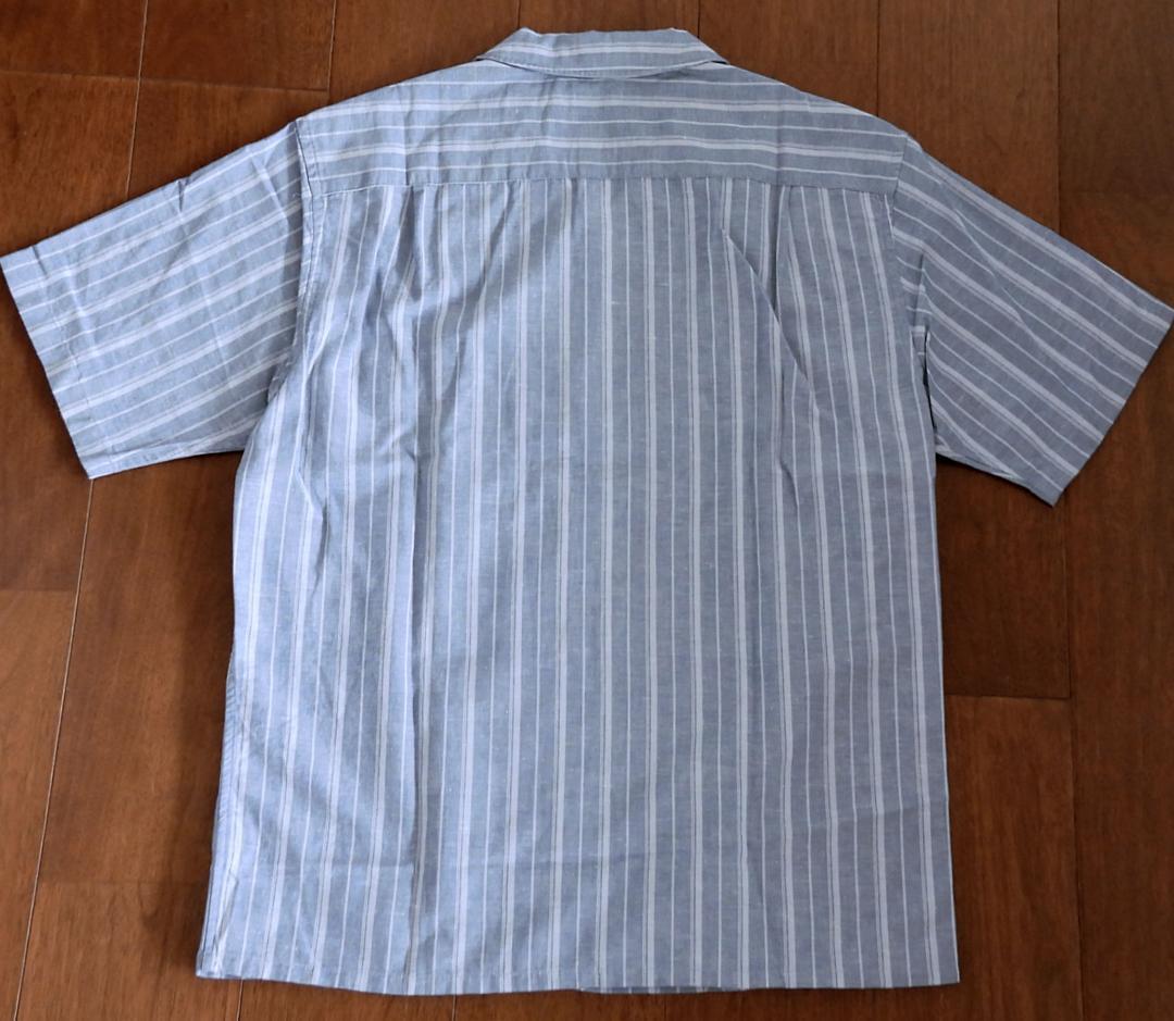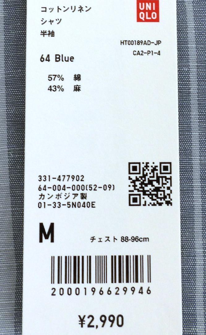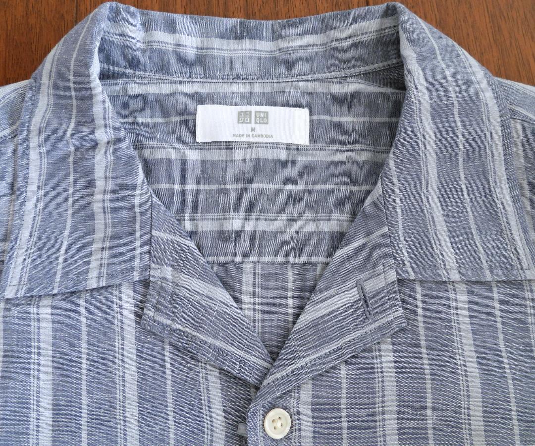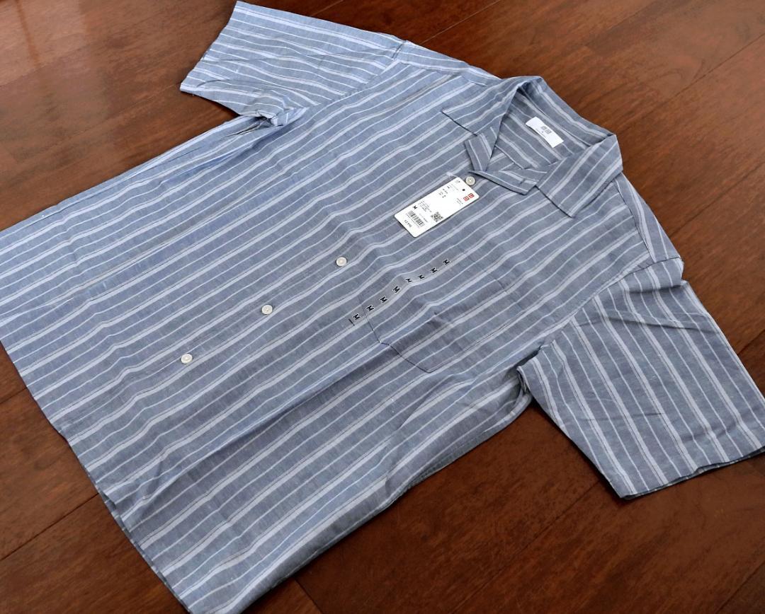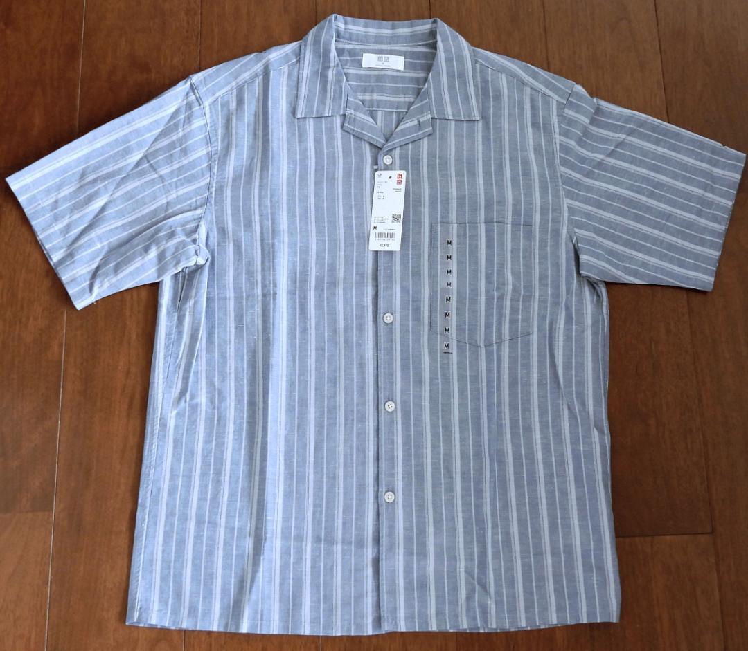 ユニクロ UNIQLO コットンリネンシャツ ストライプ 半袖 メンズ Mサイズ ブルー【新品未使用】