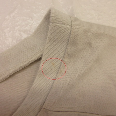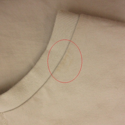 【状態】この商品には下記のようなダメージがあります。 ・首周りに多少の毛羽立ち ・首周りに薄茶色い汚れ ・前身頃に0.5cm程度の茶色い汚れ その他に目立ったダメージはなくまだまだご使用いただける商品です。 ※あくまでも中古品ですので掲載写真や記載内容をご確認いただき、ご理解の上ご購入ください。