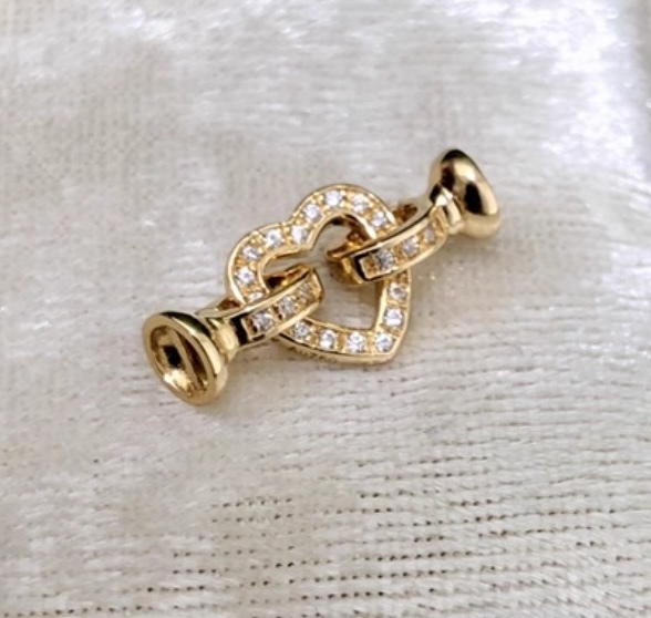 K18YG WG ハート チャーム 18金 ペンダント 留め具 チェーンパーツ コマ 18K 開口 繋ぎ クリッカー ジルコニア (ダイヤモンド版も有り)