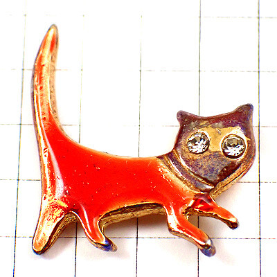 "ピンバッジ・金色のネコ猫ラインストーン赤ゴールド"の商品説明 | |