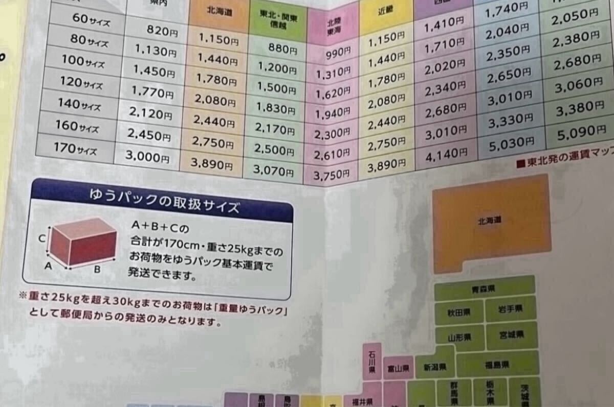 如果合寄打包的商品超过5件,每增加4件,加收人工费用300日元,不足5件按4件计算。