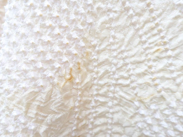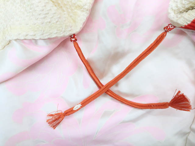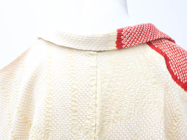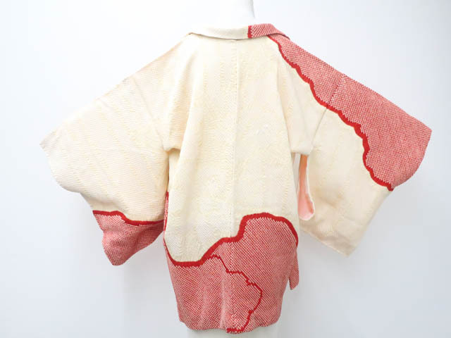 リサイクル商品のため、背、身頃、袖、羽裏など所々にシミがございますが着用可能なお品です。 地色は薄黄・赤です。 1枚目の画像が近いお色かと思われます。 素材は正絹です。 |