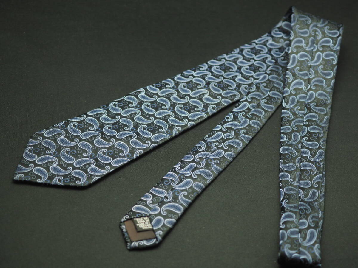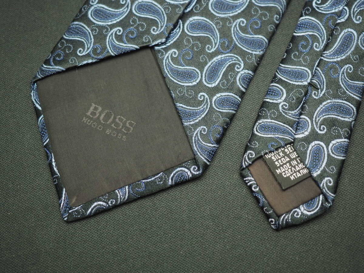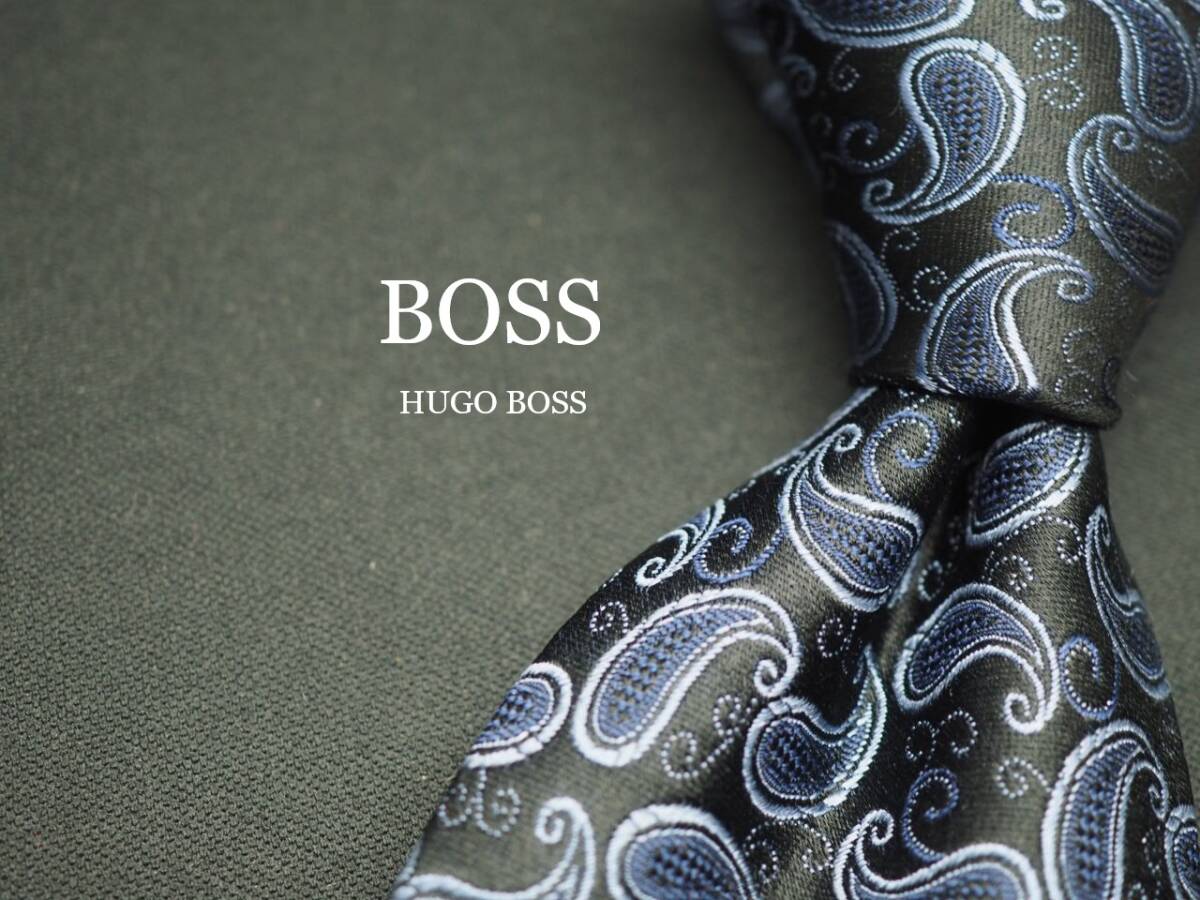 美品【HUGO BOSS ヒューゴ ボス】 F2253 ペイズリー ブラック ネイビー SILK ブランド ネクタイ 古着 良品 転売 仕入