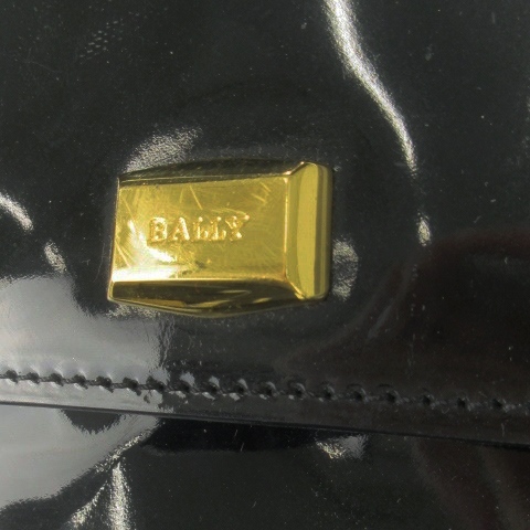バリー BALLY ハンドバッグ ワンハンドル エナメルレザー 革 ロゴ ゴールド金具 黒 ブラック /AO4 ■GY18 レディース