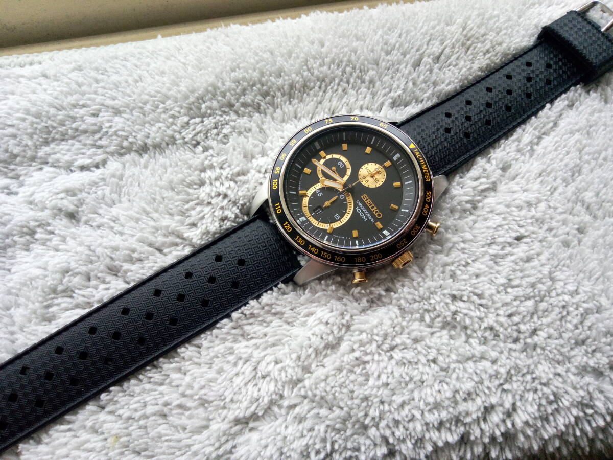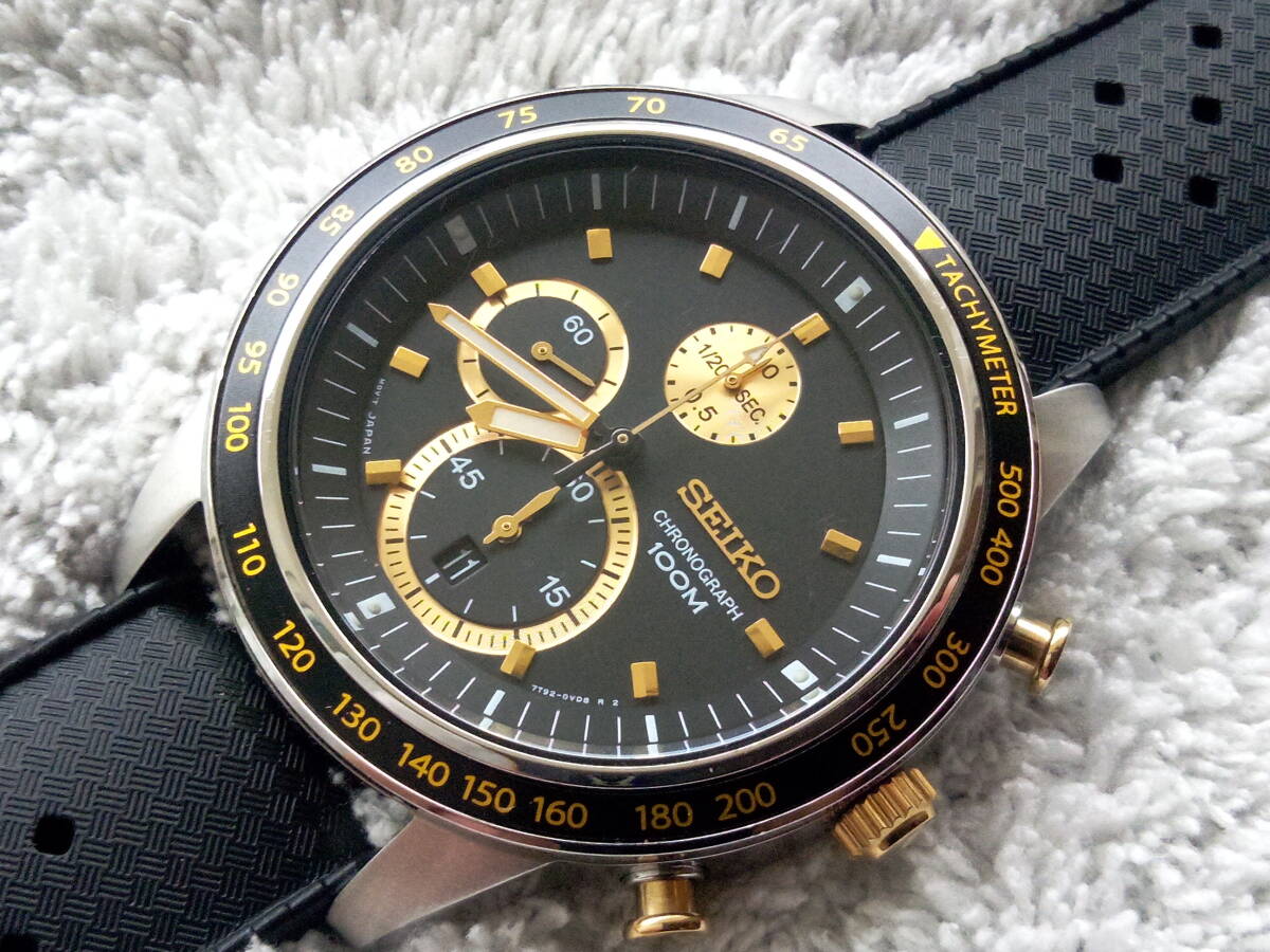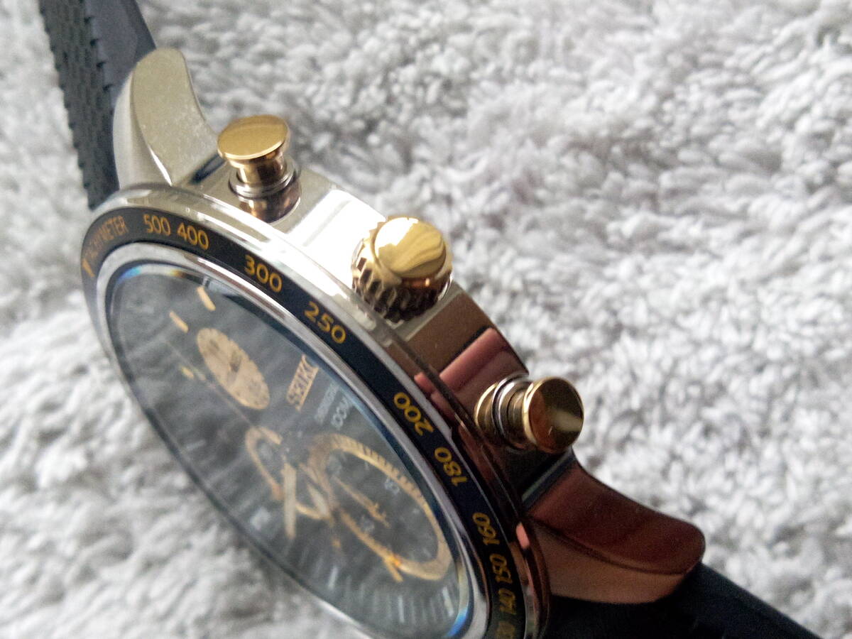 ごく細微傷程度でダメージはほとんどなく美品です。クオーツで時計動作クロノデイト機能稼働正常です。バンドは社外品新品ラバー交換済みです