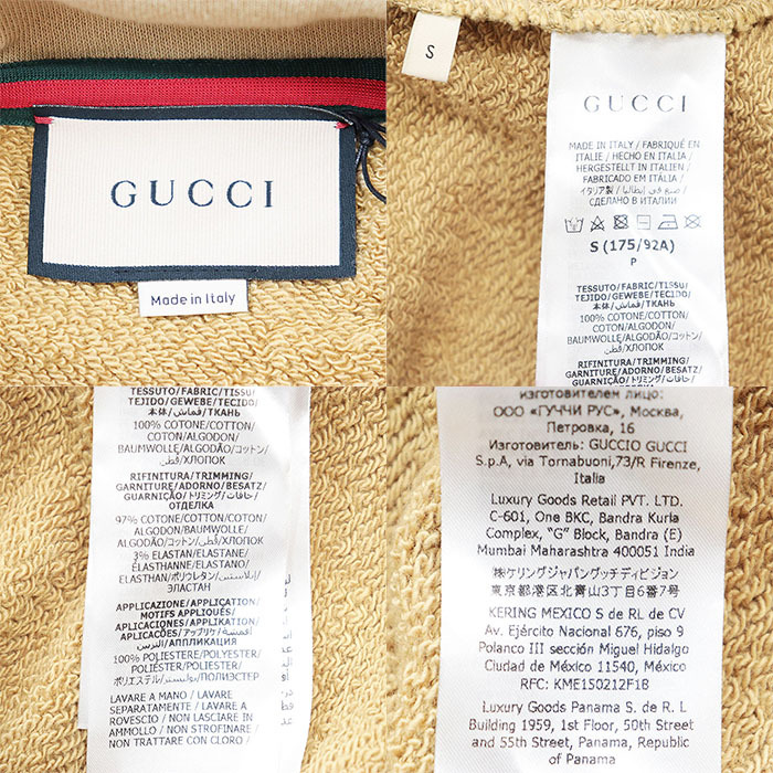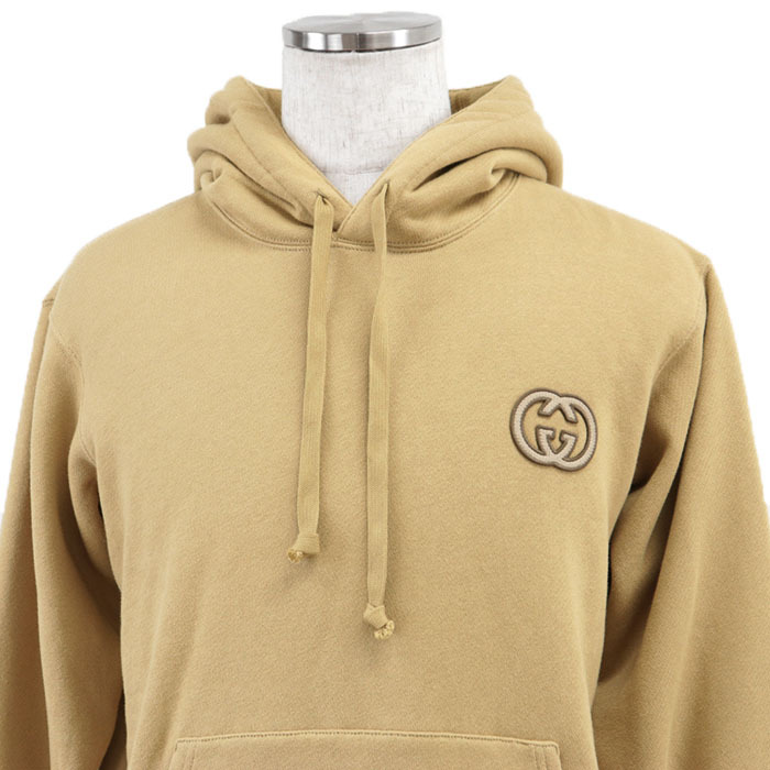 シリーズGUCCI グッチ スウェットパーカー 2024SS インターロッキング GG ワッペン コットン100% 長袖 タグ付属 メンズ S キャメル 伊製