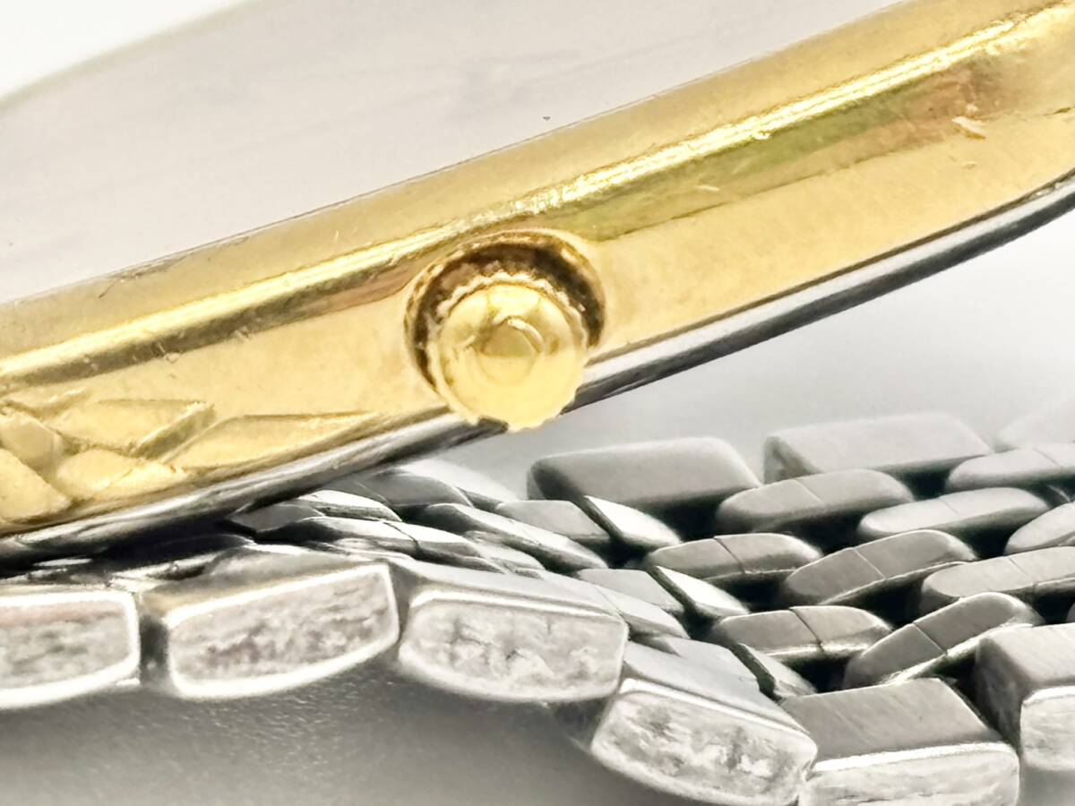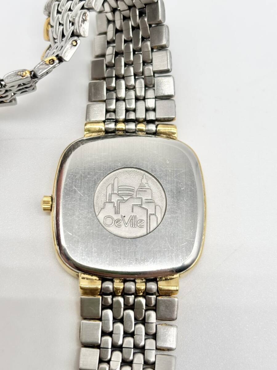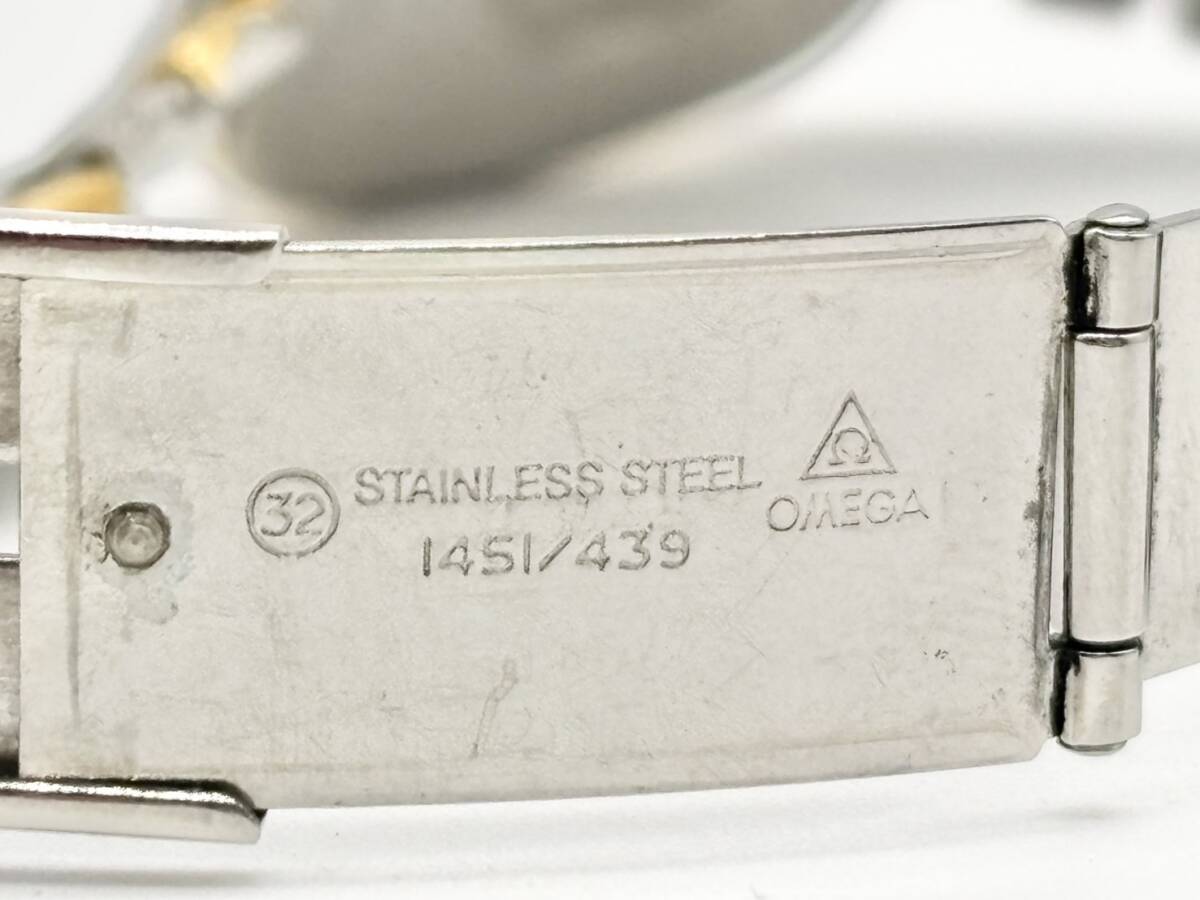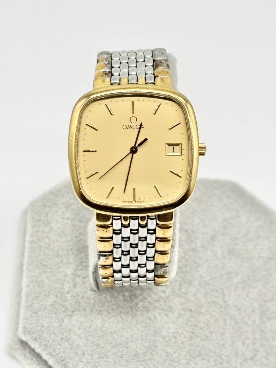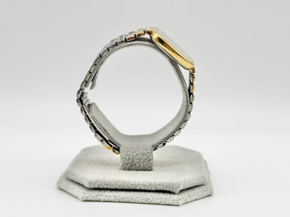 【OMEGA】オメガ デビル 純正ベルト メンズ スクエア クォーツ コンビ 1451/439 腕回り18㎝ De Ville ゴールド文字盤 SS デイト