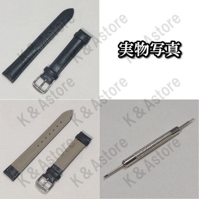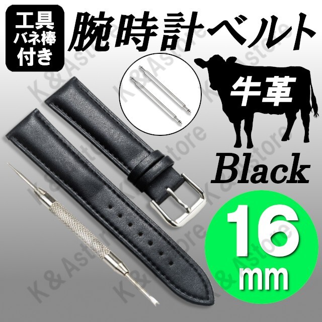 【匿名配送】腕時計 ベルト バンド 16mm 本革 牛革 レザー バネ棒付き 無地 交換用 バネ棒外し 工具付き レディース 女性 替え 黒 ブラック