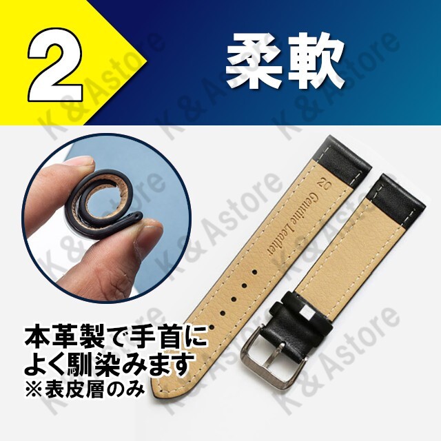 型押しなし+無地でシンプルな外観はビジネスシーンからカジュアルシーンまで使用でき、クラシック、スポーティーなデザインの腕時計にも相性抜群です。