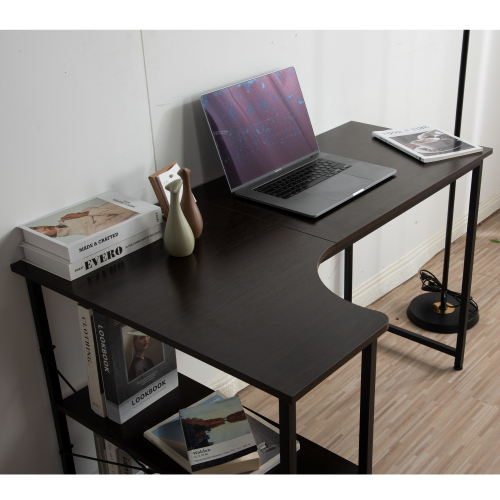 【ブラウン】パソコンデスク L字 120cm 2段ラック付 デスク木製 ミシン台 書斎机 勉強机 ブラウン