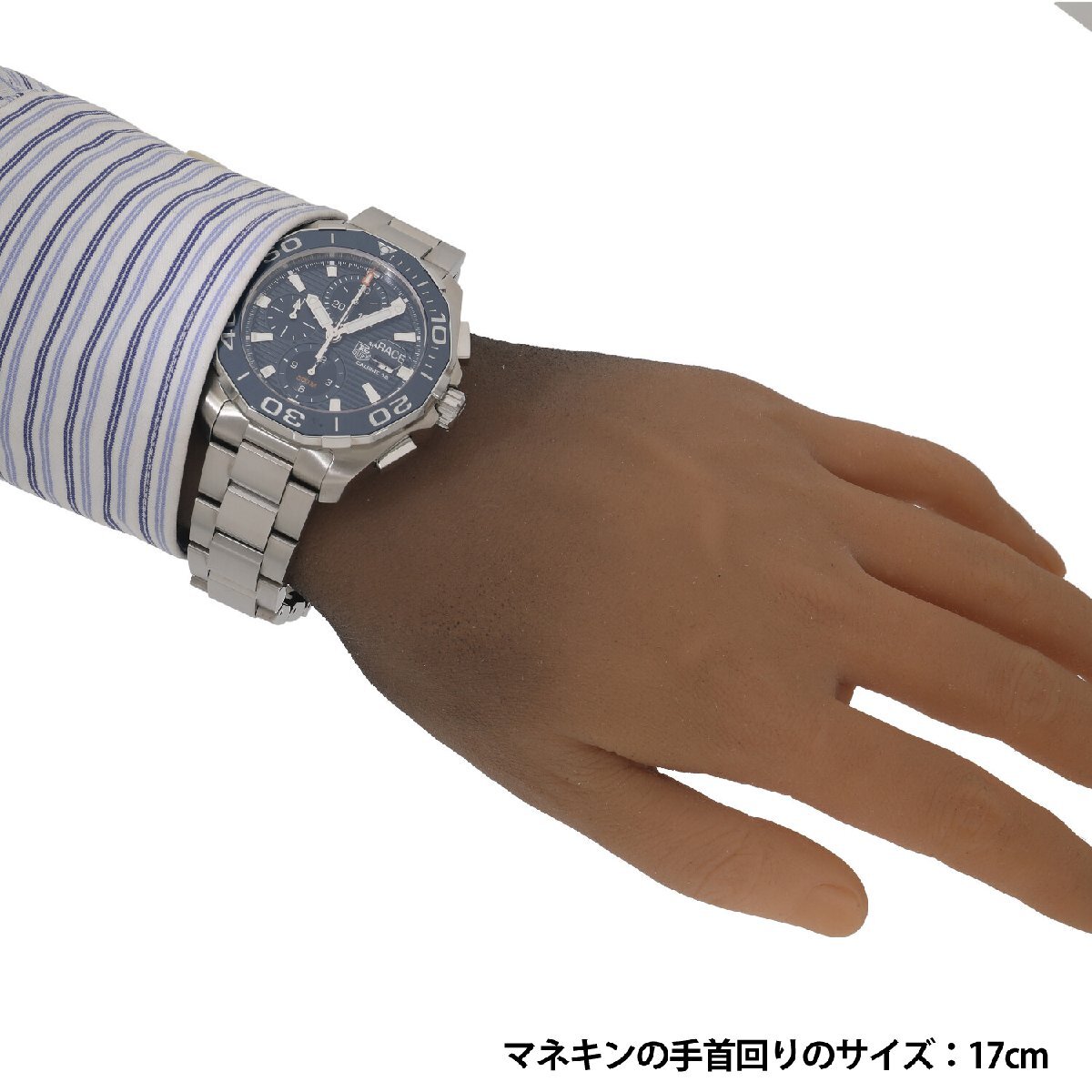 モデルについて | アクアレーサーという名の通り、水からインスピレーションを受けて誕生したスポーツウォッチです。重厚な装着感のステンレス製ケースは43ミリで、迫力と存在感を感じさせます。ダイビングにも耐えうる300メートル防水に加えて時刻を計測できるクロノグラフ機能も備えます。リーズナブルな価格帯で展開されるアクアレーサーですが、ベゼルディスクに耐傷性に優れた光沢あるセラミックを採用した事で、スポーティーなダイバーズウォッチながらラグジュアリーな雰囲気も併せ持ちます。 |