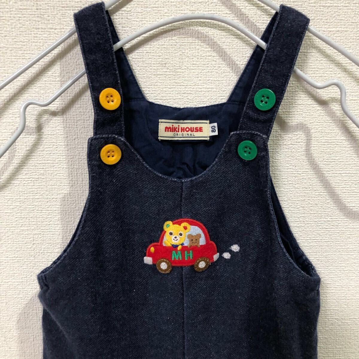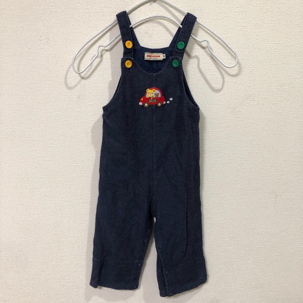 「商品名」ミキハウス mikiHOUSE 子供服 オーバーオール クマ 車 コットン 80サイズ ベトナム製 14-3303-569-13