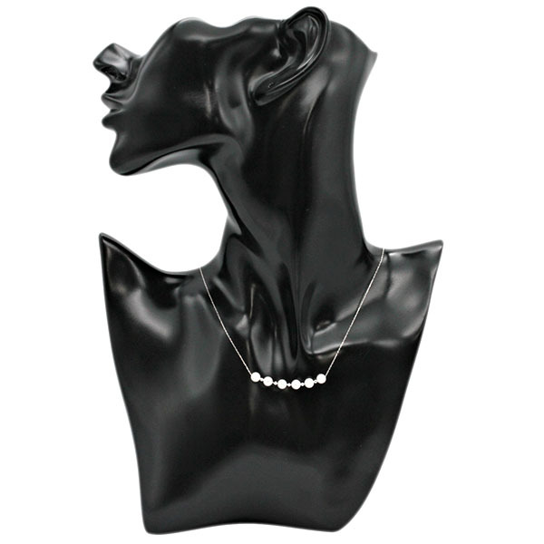 ベビーパールの間にミラーボールパーツがキラキラと光り、華奢なチェーンが儚げな印象のネックレスです。どんなファッションでも馴染み、ワンポイントに取り入れるだけで品のある印象を与えてくれる万能なアイテムです。