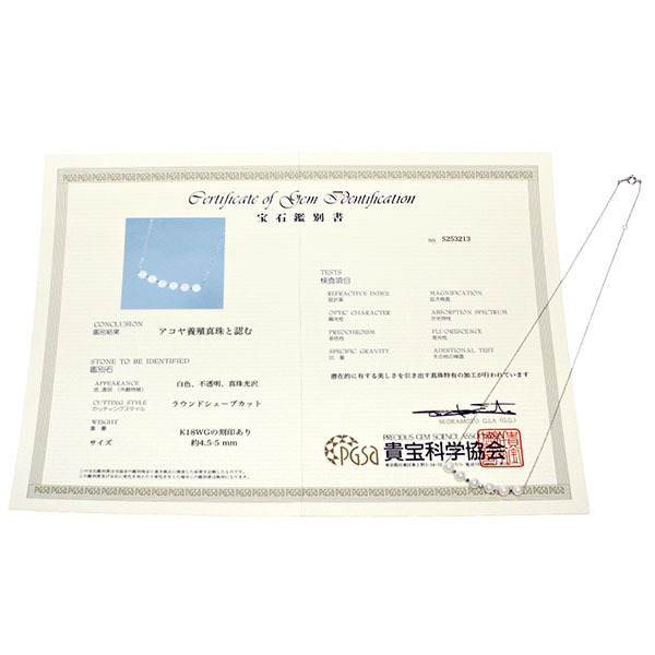 K18WG アコヤ真珠 パール ネックレス 43.5cm P4.5~5mm ホワイトゴールド750 ベビーパール プレゼント ジュエリー レディース 女性 鑑別書