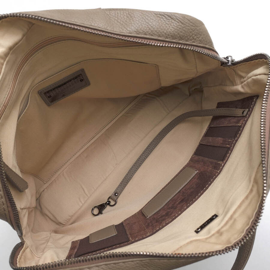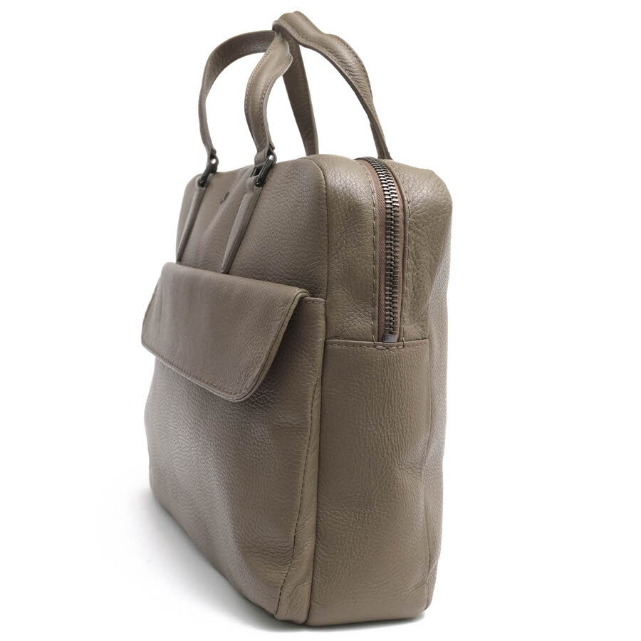 最高級のグレイン・カーフスキン「マルカプント」を使用したラグジュアリーなブリーフケース。独自のシボ加工が施された革で、立体感のある柔らかな表情を持っています。また、ハンドル部分にはSoSoft社の「SoSoftパディングシステム」を採用し、長時間の使用でも快適な持ち心地を提供します。内部は、スリップポケットとファスナーポケットが複数配置。外側にはフラップ付きのマグネットポケットが一つあり、頻繁に使う小物の収納に便利です。 |