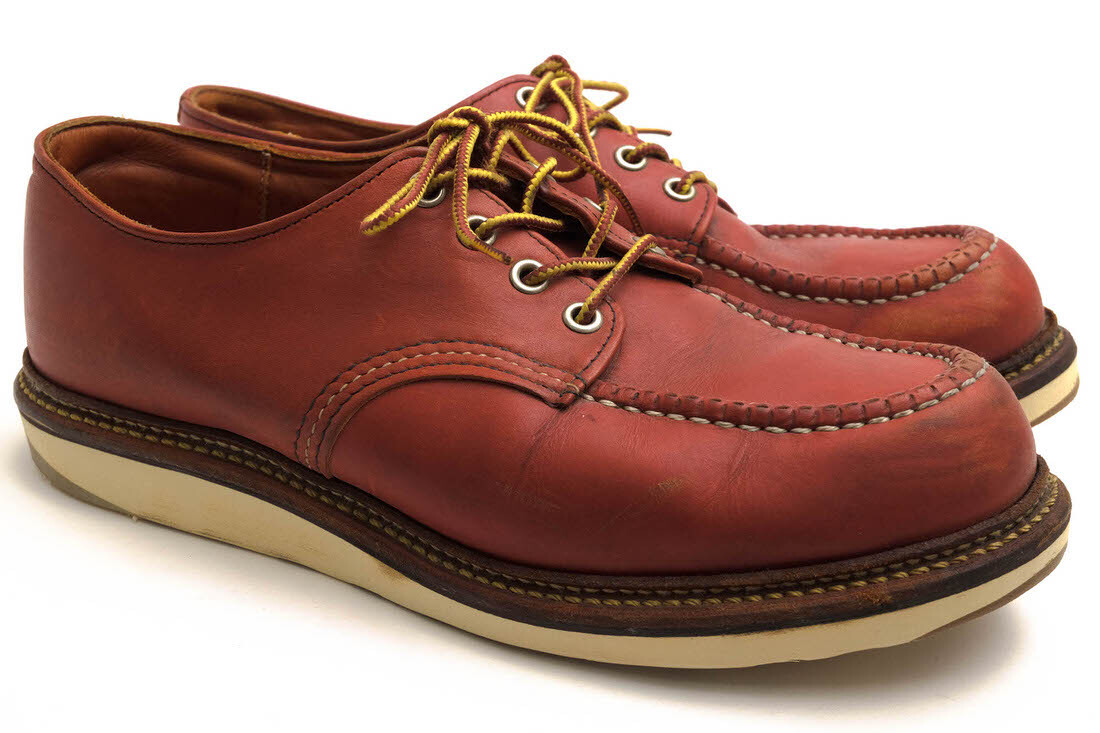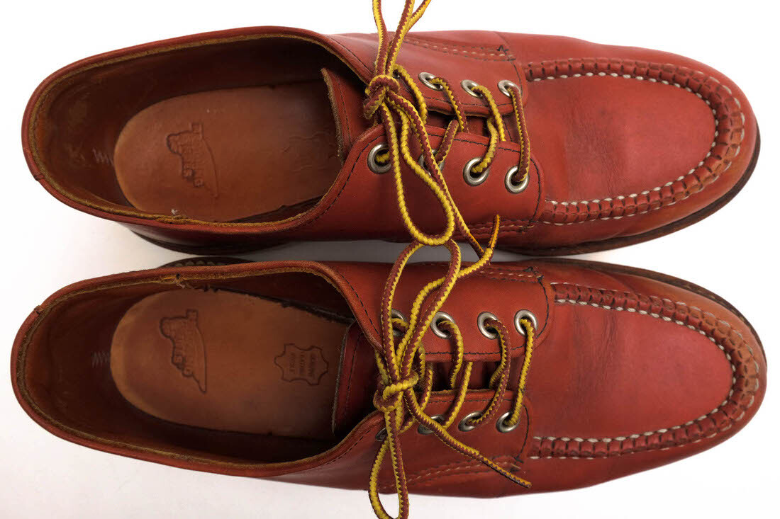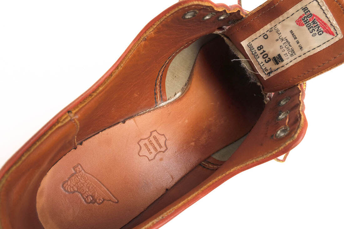 6インチのアイリッシュセッター、製法ではポストマンに代表されるサービスシューズを原型としているオロラセットレザーを使用した#8103。かかとの"ドッグテール"や、一枚革で成型された"アドラー・エンボスドモック"など、オッ クスフォードならではの仕様。アウトソールにはクッション性に優れたREDWING定番の通称"ホワイトソール"トラクショントレッドウェッジソールを採用。 |