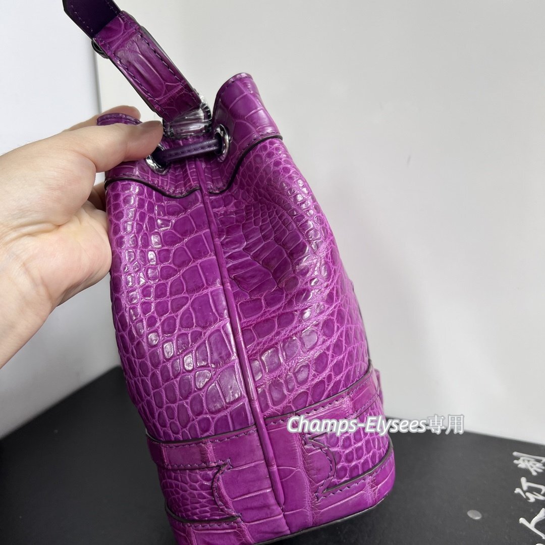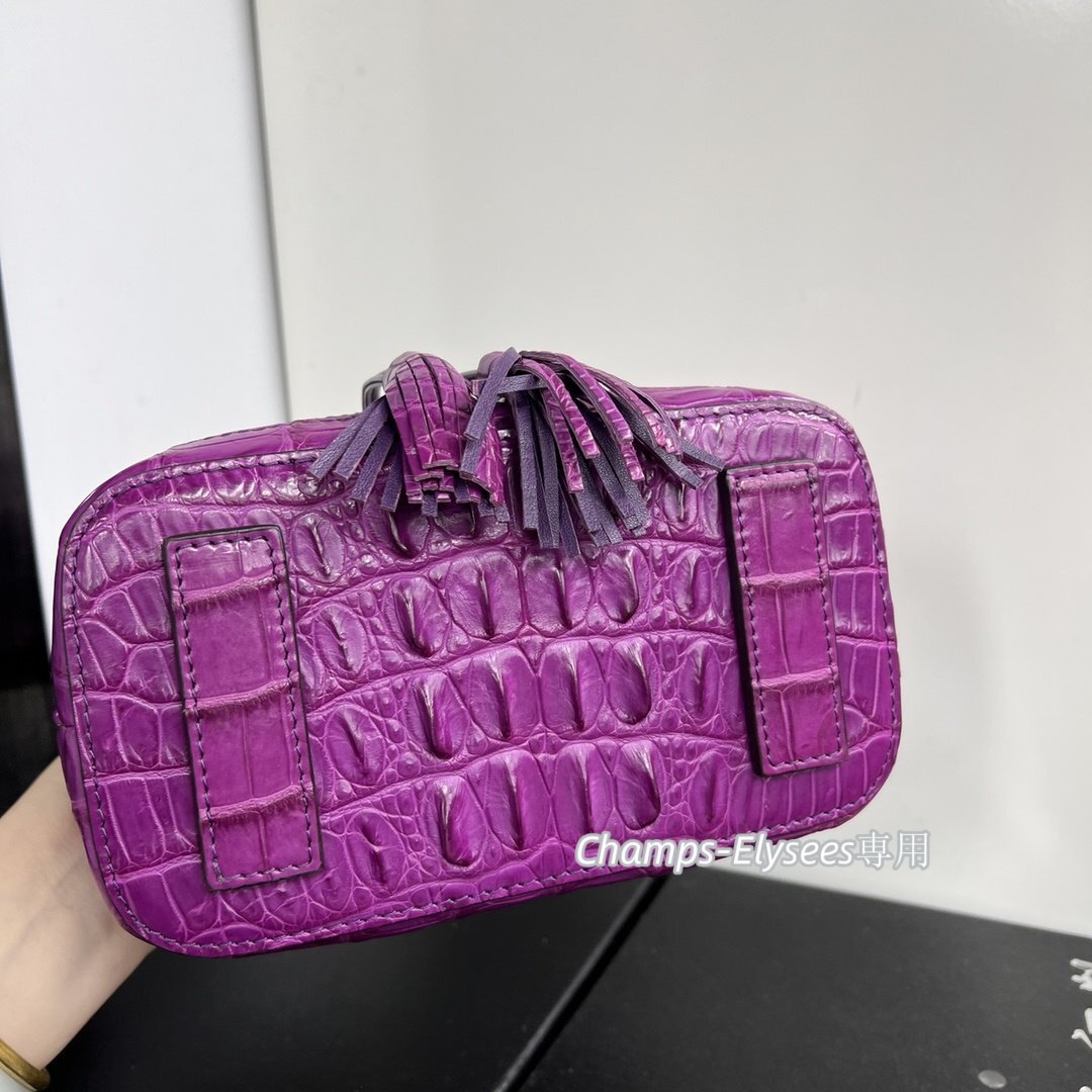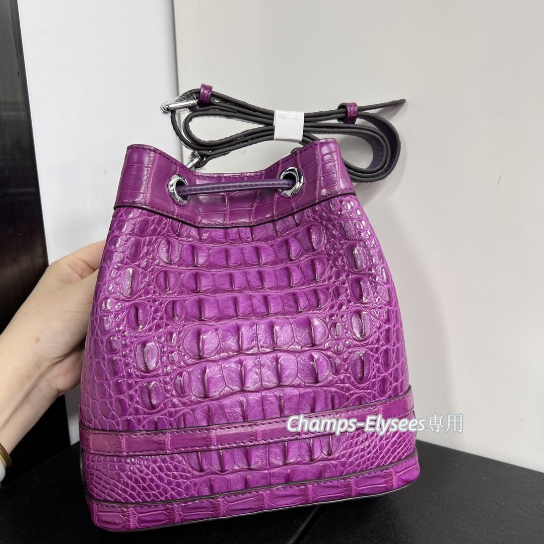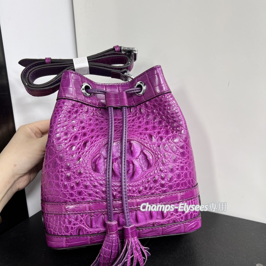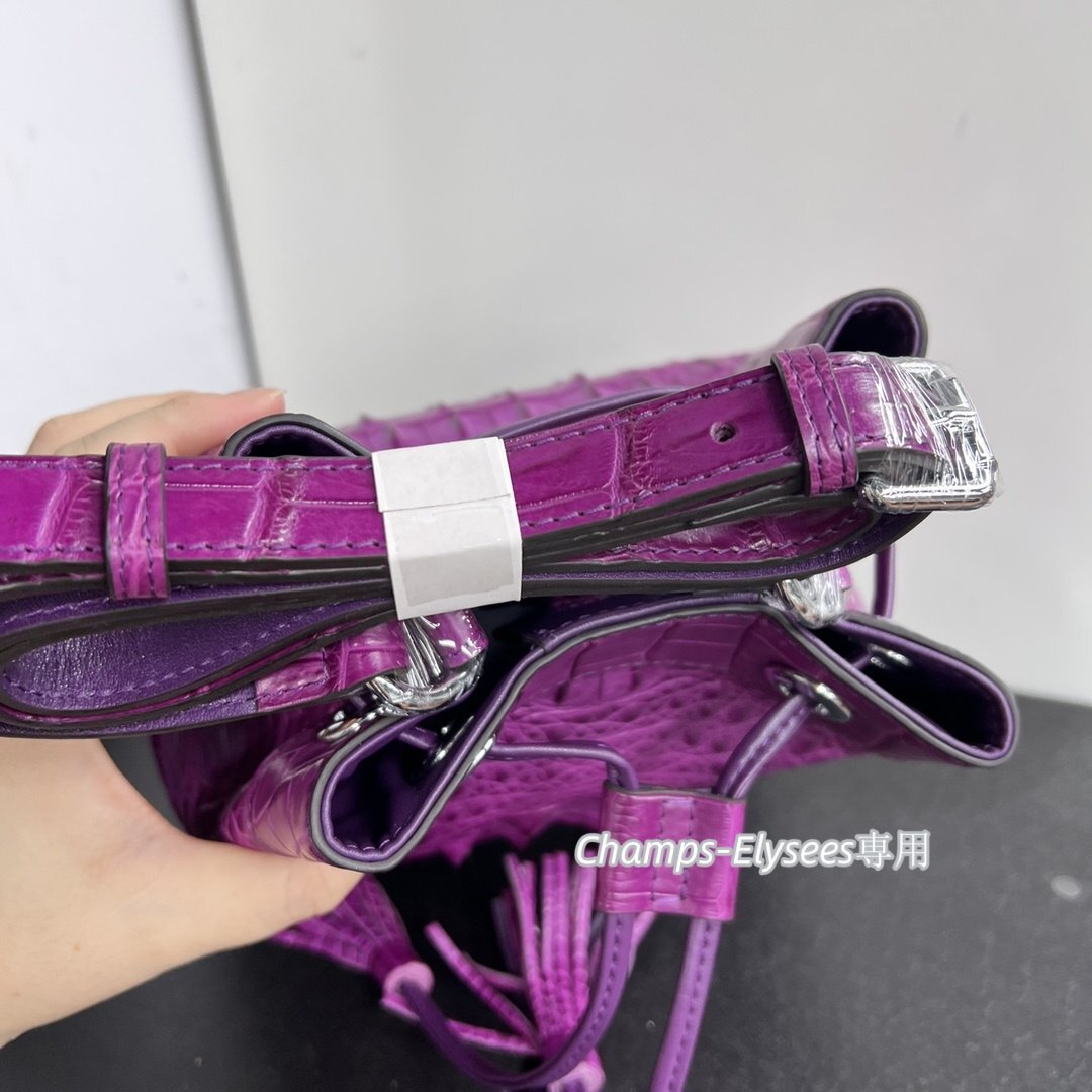 貴重品 革リュック 1点もの 本物ワニ革 骨革 クロコダイルレザー バケツバッグ 水染めムラサキ 肩掛け