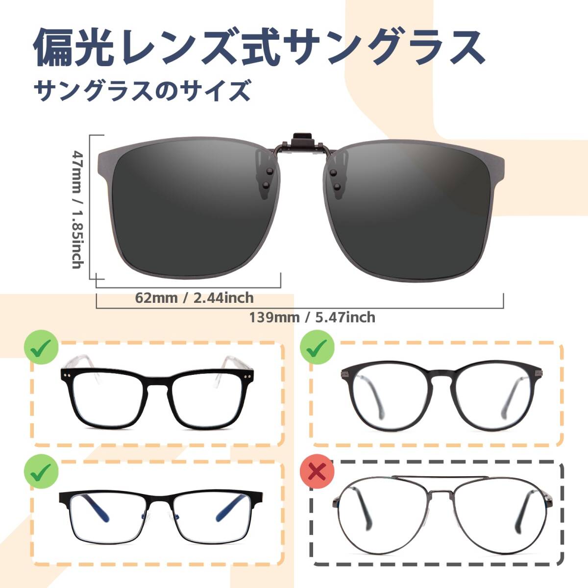 [JO] 跳ね上げ式 サングラス メンズ 偏光 クリップオン メガネの上から 超軽量 UV400 レディース 幅広 運転用 人気 釣り用 クリップオンサングラス