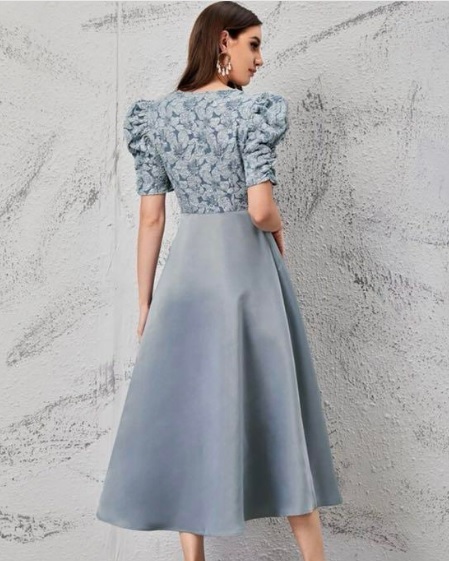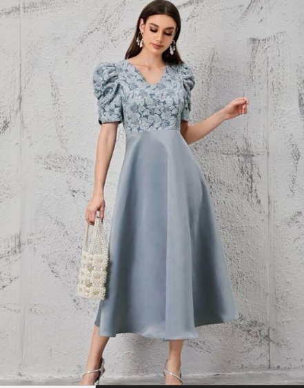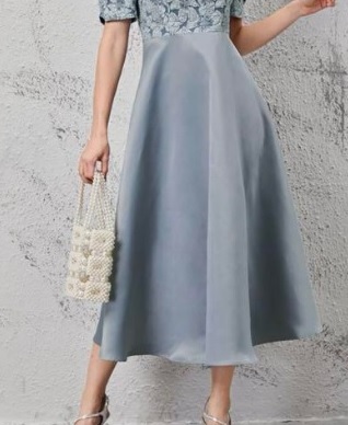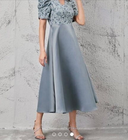 エレガントパ-ティ-ワンピ-スです。しっかりとした生地で気品に満ちたとてもエレガントで上品なひとクラス上をいく一品です。裏地なし。右サイドファスナ-有。