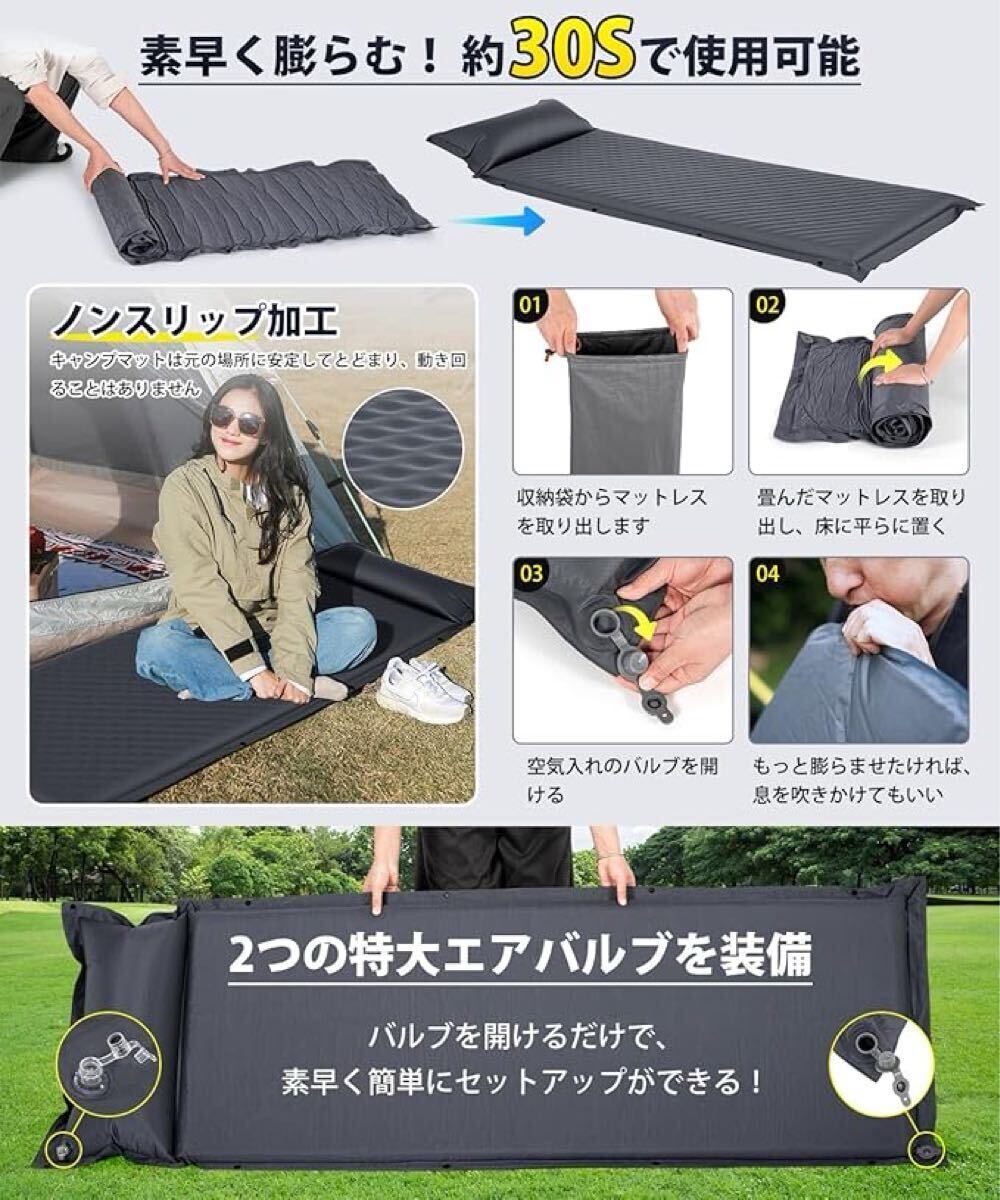 【大特価】エアーマット キャンプマット【2025新開発・30秒で膨らむ・R値6.5】厚手8cm 車中泊マット枕付き インフレーターマット 高弾性