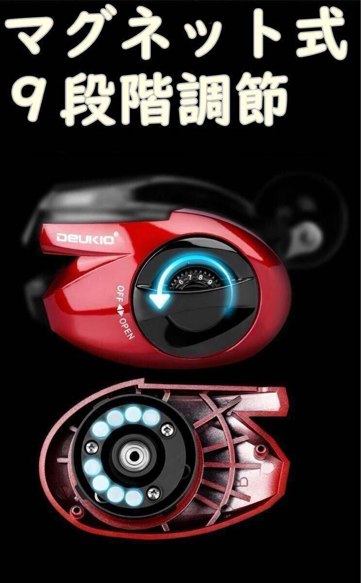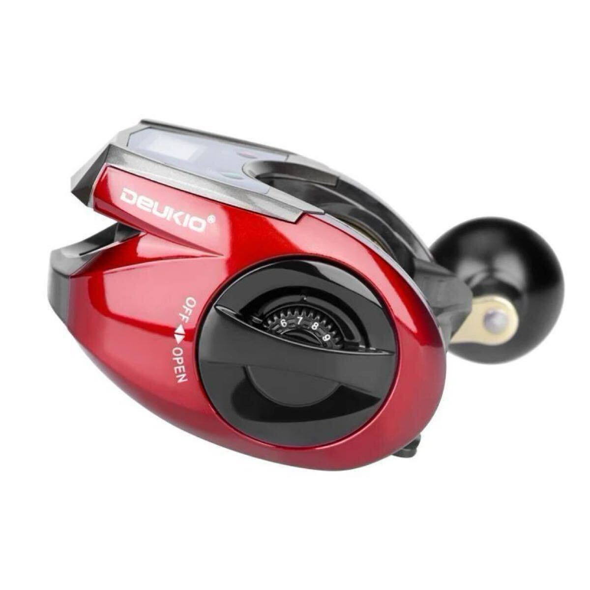 爆釣リールベイトキャスディングリールカウンター付 デジタル DEUKIO 左ハントル 右ハントルワインレッド、ディスプレイ 6.4:1 高速比 軽量ジギング