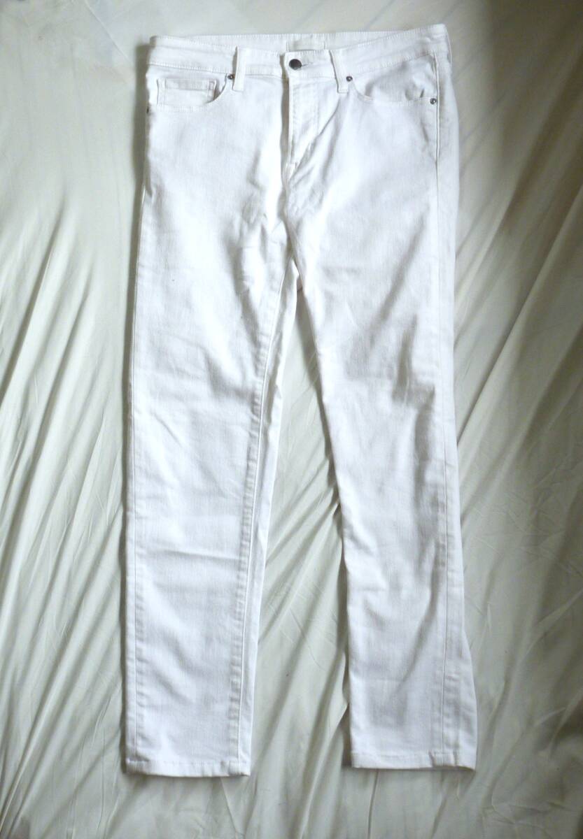 「UNIQLO ホワイトジーンズ」USED-1の出品です。サイズは「30(76CM)」と表記されており、平置き採寸で「ウェスト41・股下72」ですが、素人の採寸ですので参考程度とお考え下さい。使用感があまりなく比較的きれいな状態で、大きなダメージは見当たりませんでした。その他破れ・穴あき等のダメージは見当たりませんでしたが、見落としが有った際は現状優先とさせていただきますので、事前に了解願います。この様なお品ですので、神経質な方の入札はご遠慮ください。商品の発送は、入金確認後の週末を予定しておりますので、お急ぎの方は入札を控えられて下さい。商品の発送後は、ノークレーム・ノーリターンでの対応をお願いします。