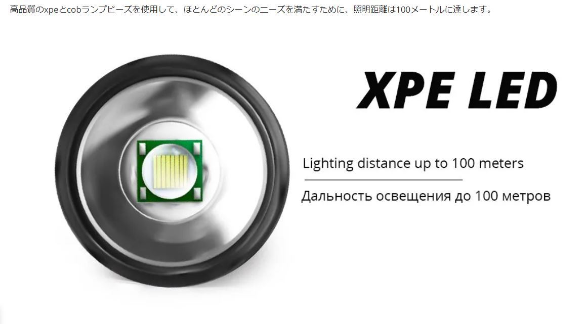 高品質のxpeとcobランプビーズを使用して、照明距離は100メートルに達し、ほとんどのシーンのニーズを満たします。