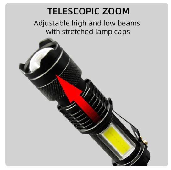 調整可能な焦点距離:ニーズに合わせて懐中電灯の焦点を変更します。 ズームインして狭いビームにするか、ズームアウトしてより広いカバレッジにすることができます。