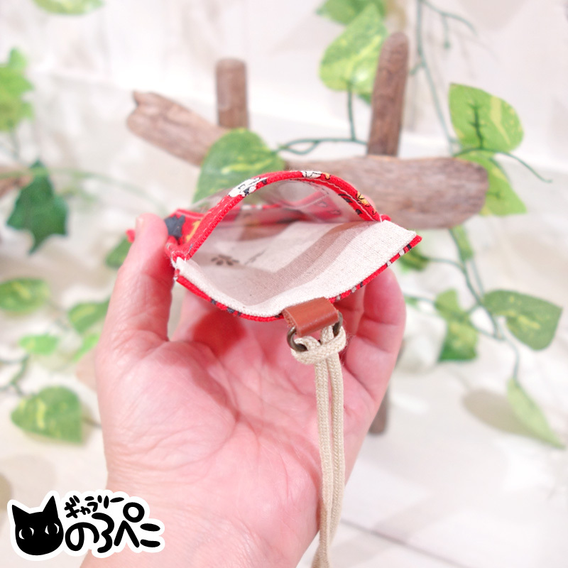 外側は洗濯ものみたいに干されちゃった猫ちゃんたちの赤色コットンリネン生地。