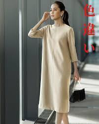 ベースは付かず離れずのほどよいゆとりを持つシンプルなノーカラーワンピース