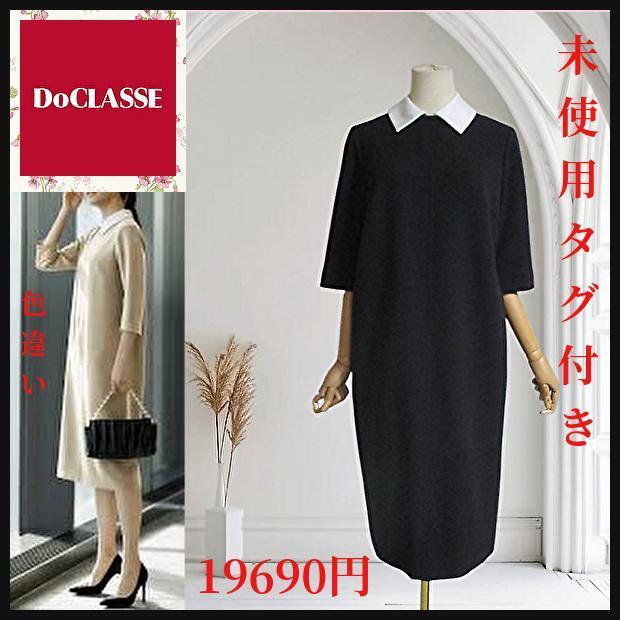 【未使用タグ付】DoCLASSE ワンピース白襟 ブラック セレモニー冠婚葬祭9  THE CLASSE ドゥクラッセ学校行事卒業式 お食事会 匿名発送