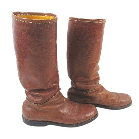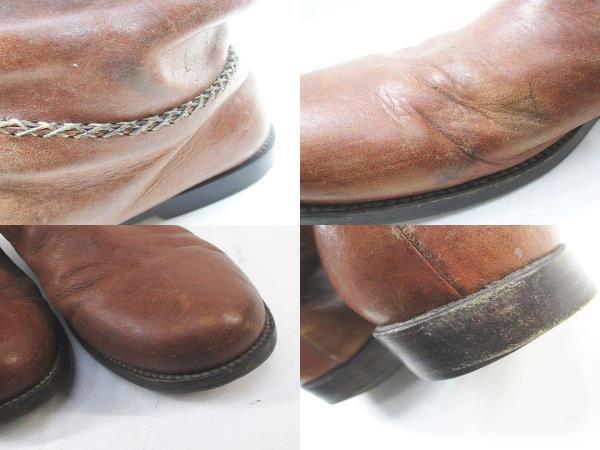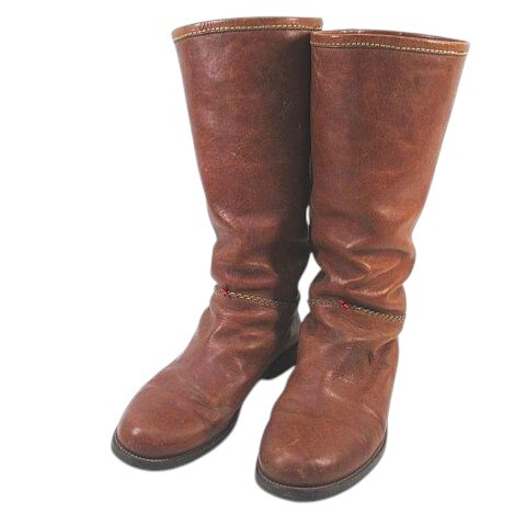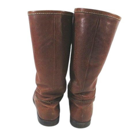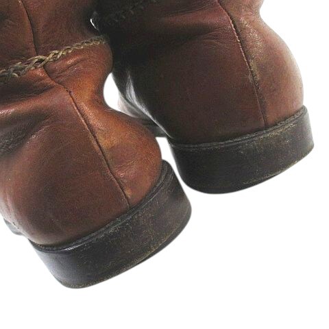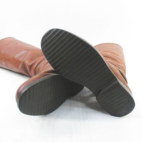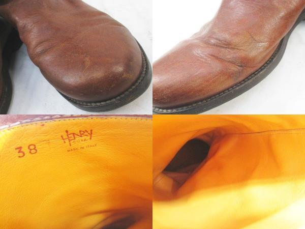 Henry cuir アンリークイール ロングブーツ フラット ステッチ ビーズ 38 ブラウン 茶系 レザー メンズ