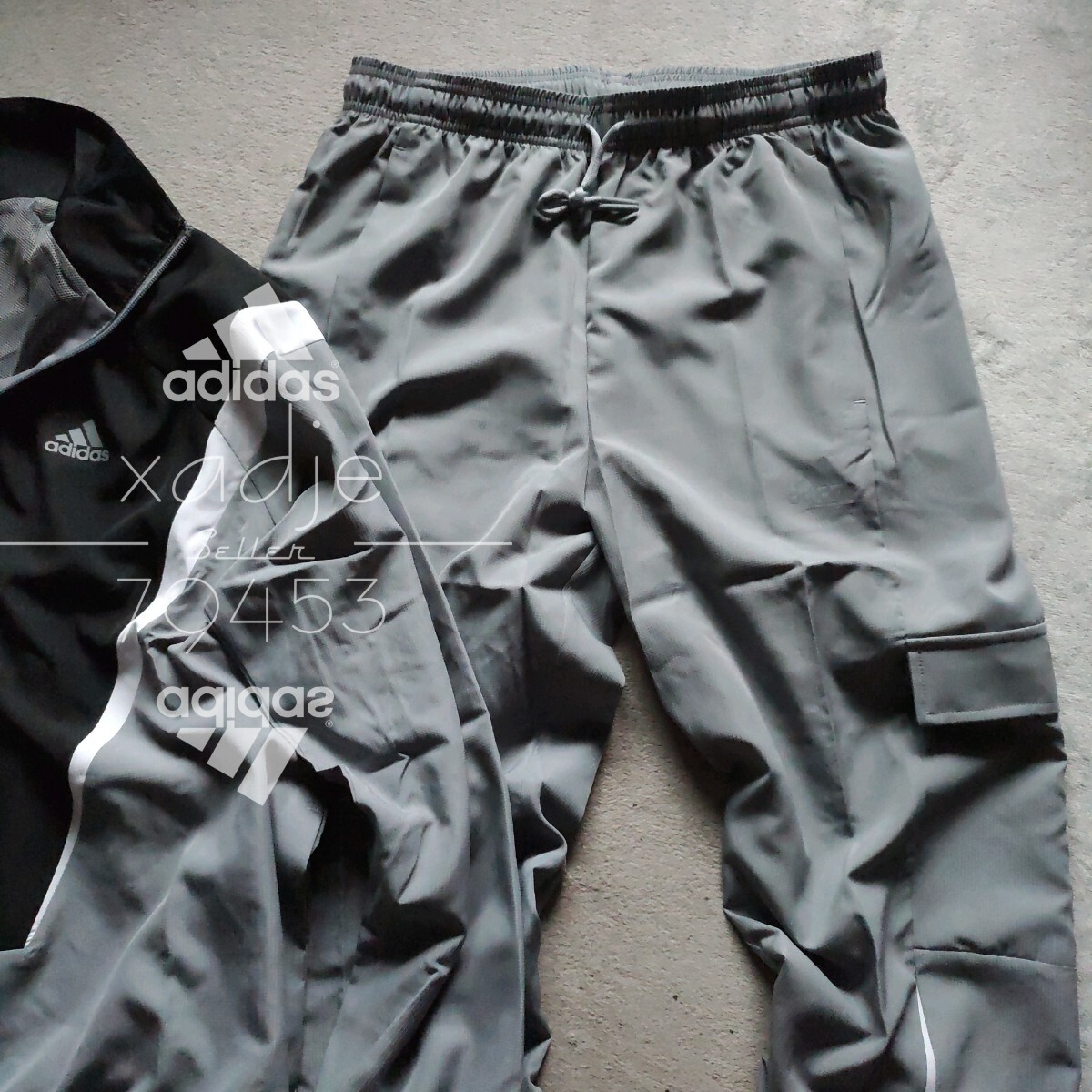 新品 正規品 adidas アディダス 上下セット ナイロン ジャージ セットアップ 灰 グレー 黒 ブラック 艶無し 薄手 定価10670円 2XL