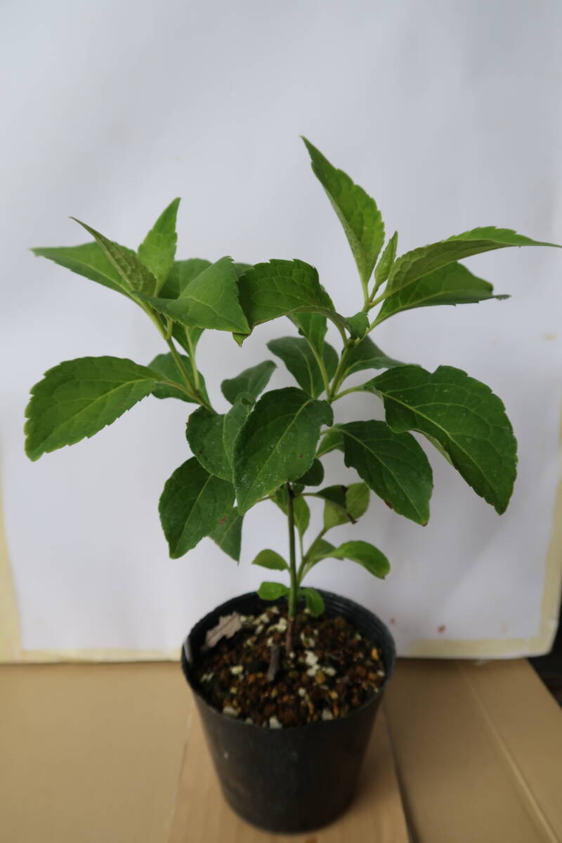 この苗は”美栄の華”の銘がついた種です。大分県九重山系産の八重咲きのヤマアジサイ。
