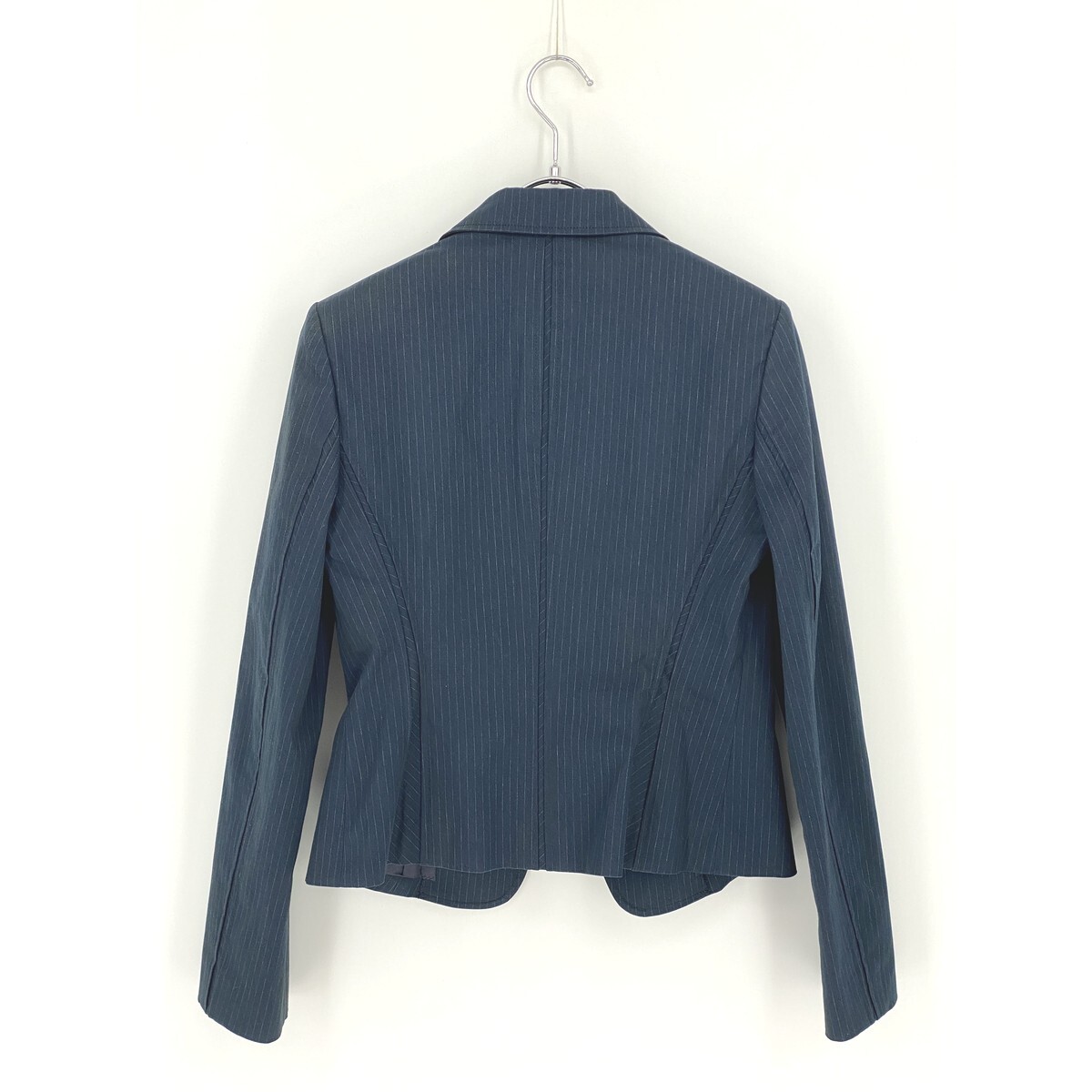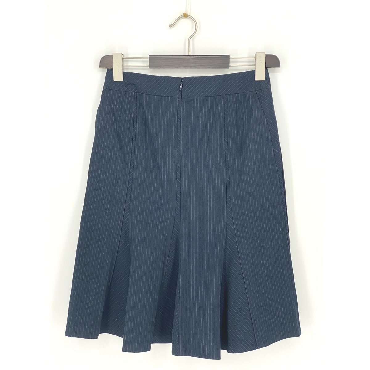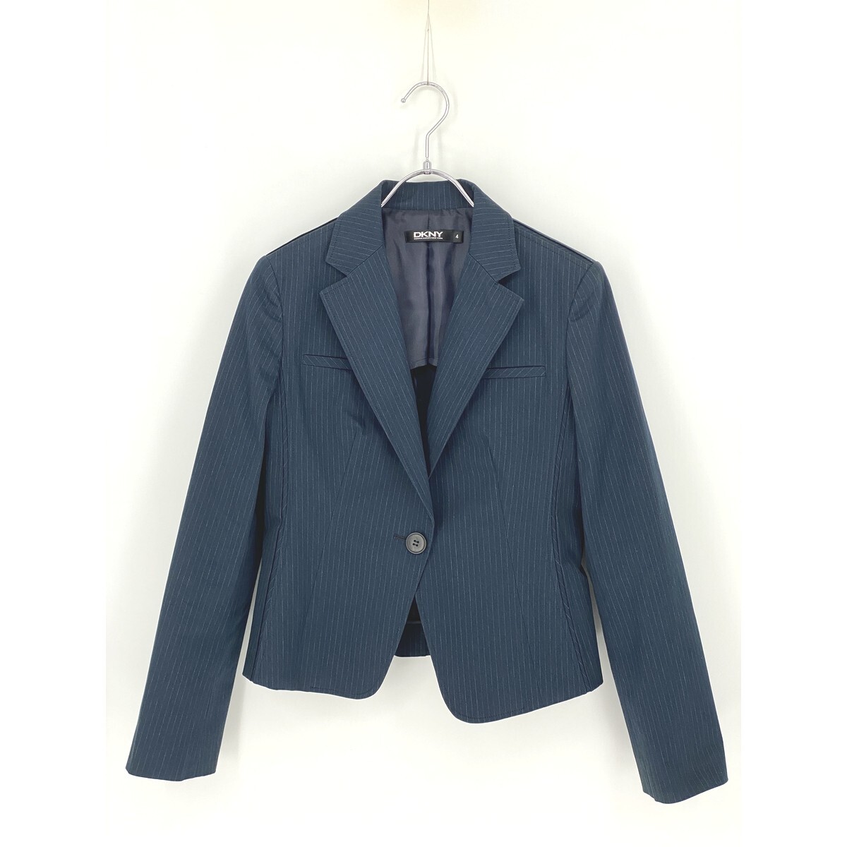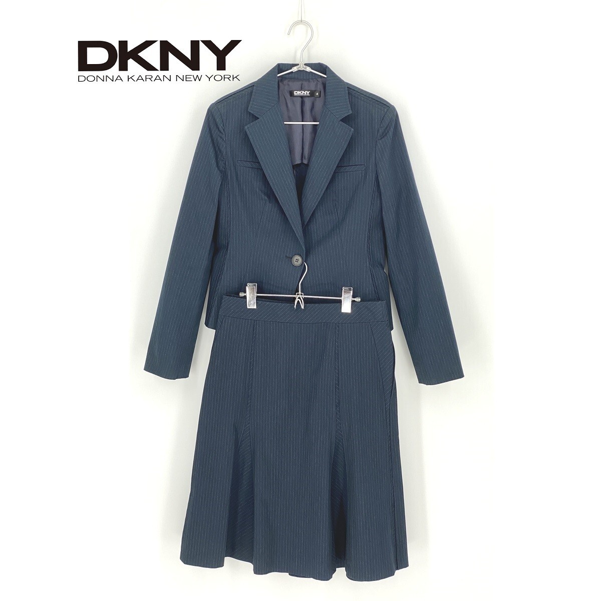 B0570/ DONNAKARAN ダナキャラン DKNY コットン ストライプ スーツ セットアップ ジャケット 膝丈 ミモレ丈 スカート 4 M 2 S紺 レディース