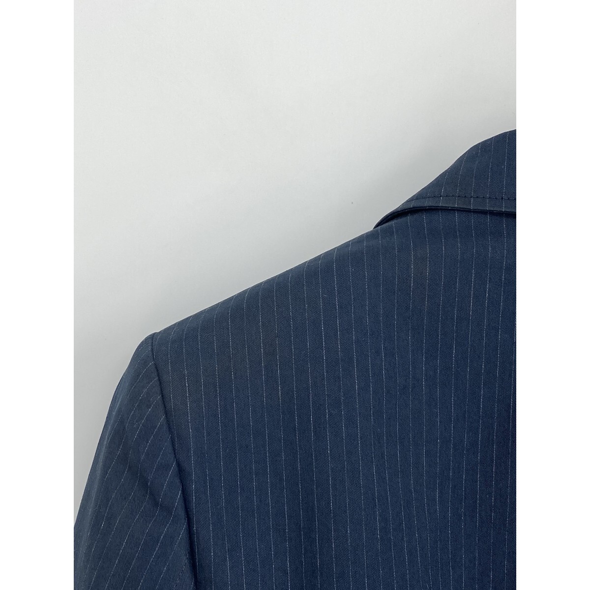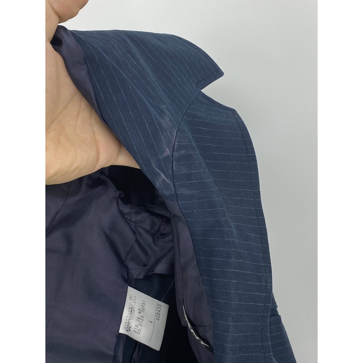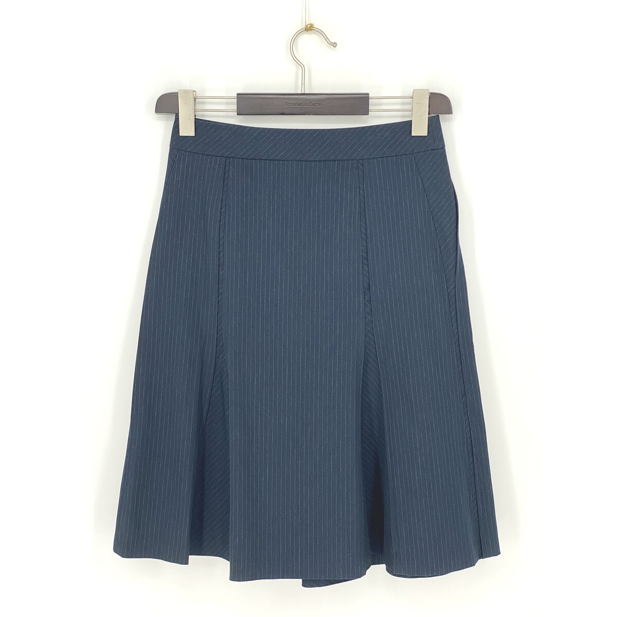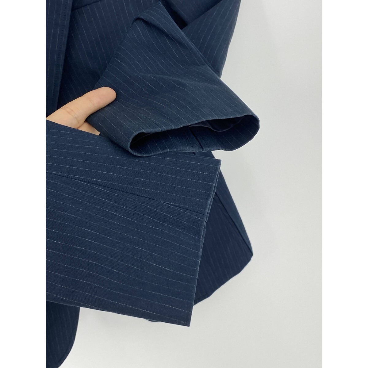 B0570/ DONNAKARAN ダナキャラン DKNY コットン ストライプ スーツ セットアップ ジャケット 膝丈 ミモレ丈 スカート 4 M 2 S紺 レディース
