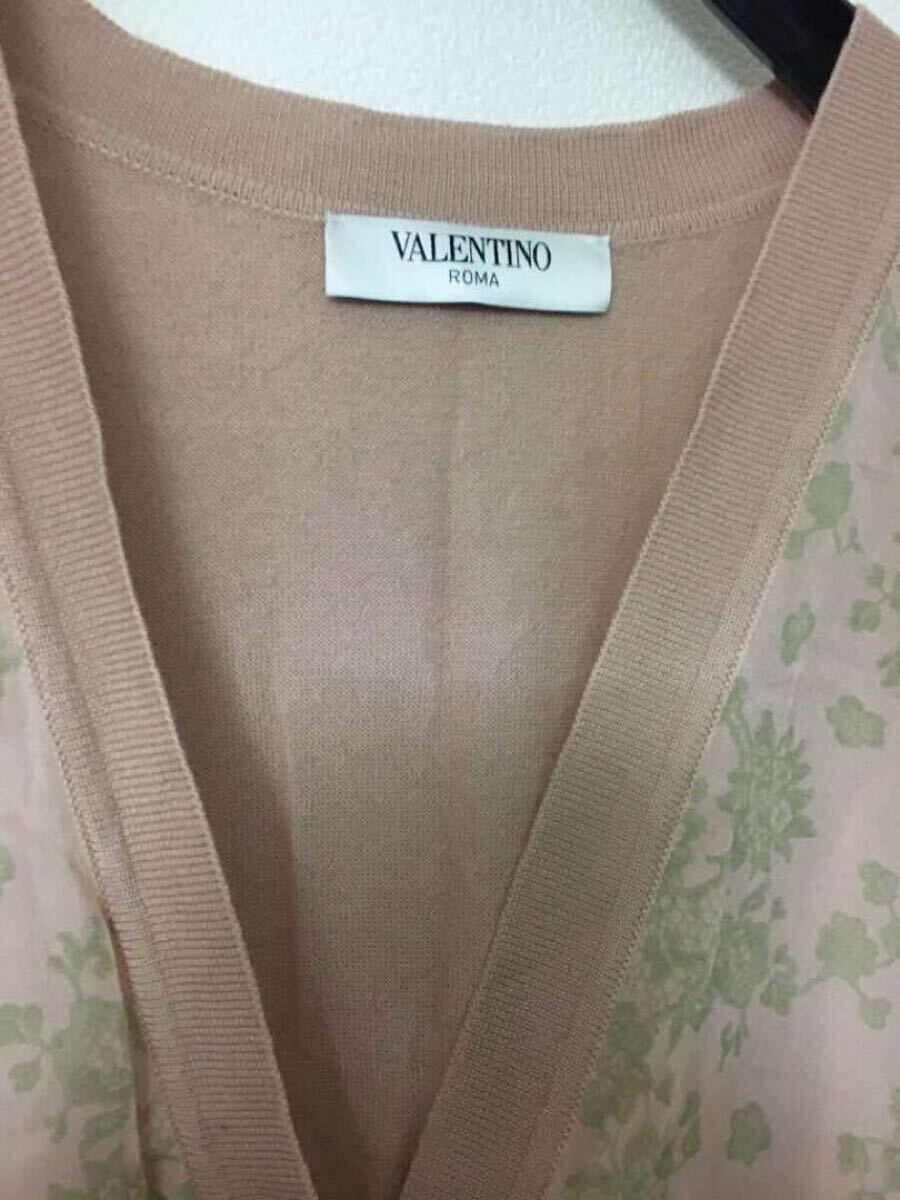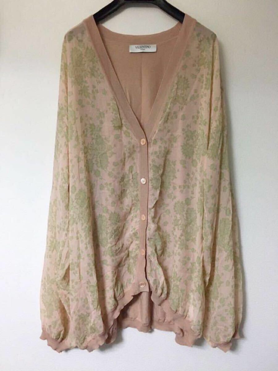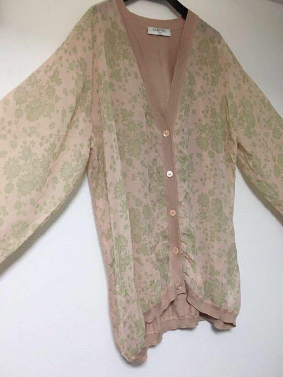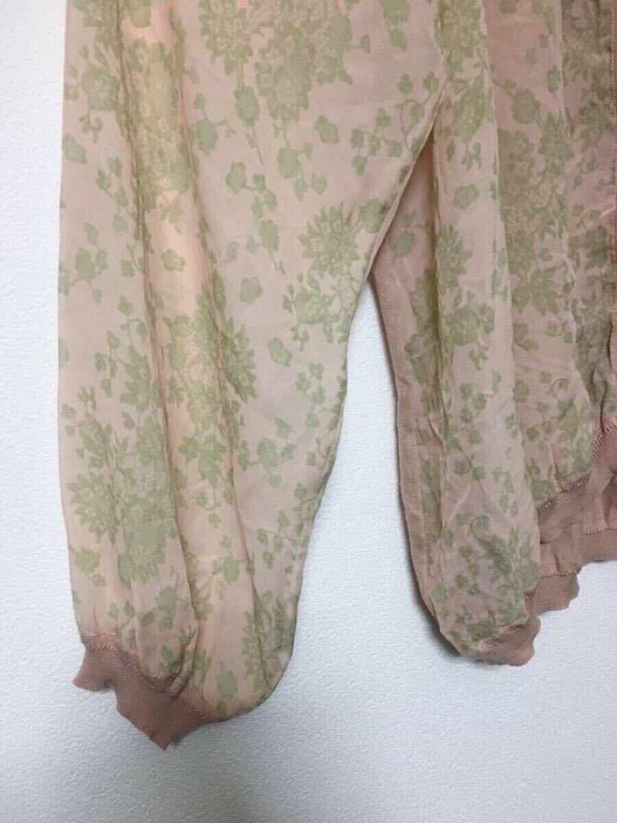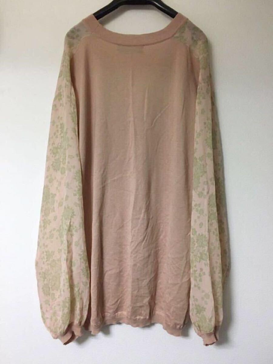 フロントからスリーブがフラワーのシルクシフォン、後身頃から前立てとカフがニットのカーディガンです。