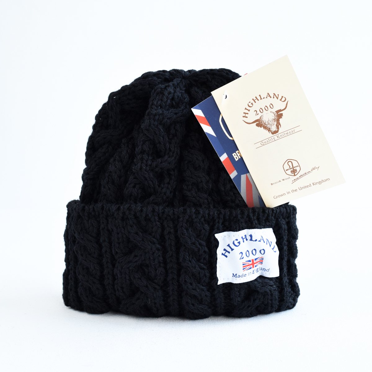 新品 HIGHLAND 2000 ハイランド イギリス製 男女兼用 ウール ニット帽 ニット キャップ 帽子 管理番号M247Q695 ブラック