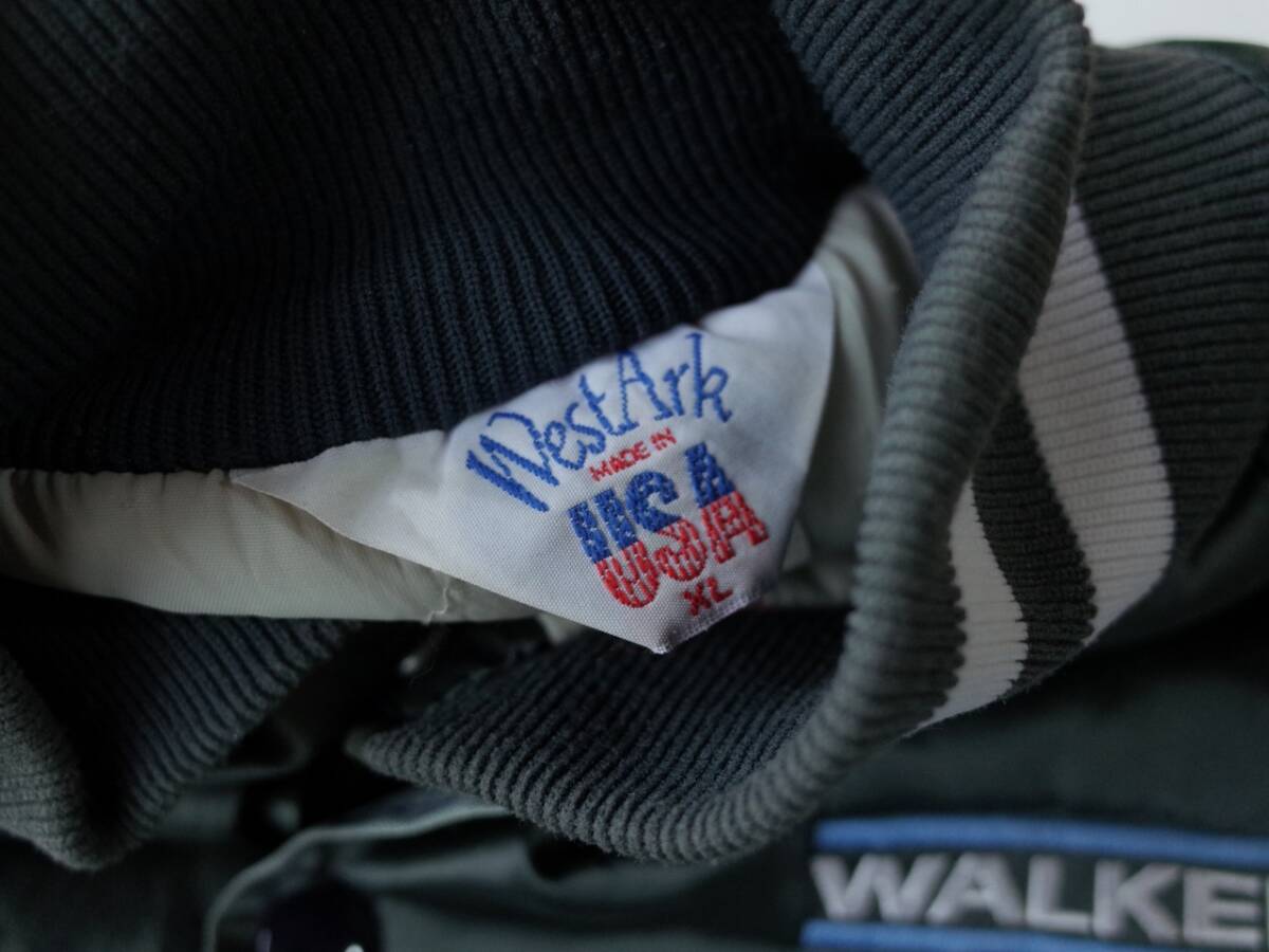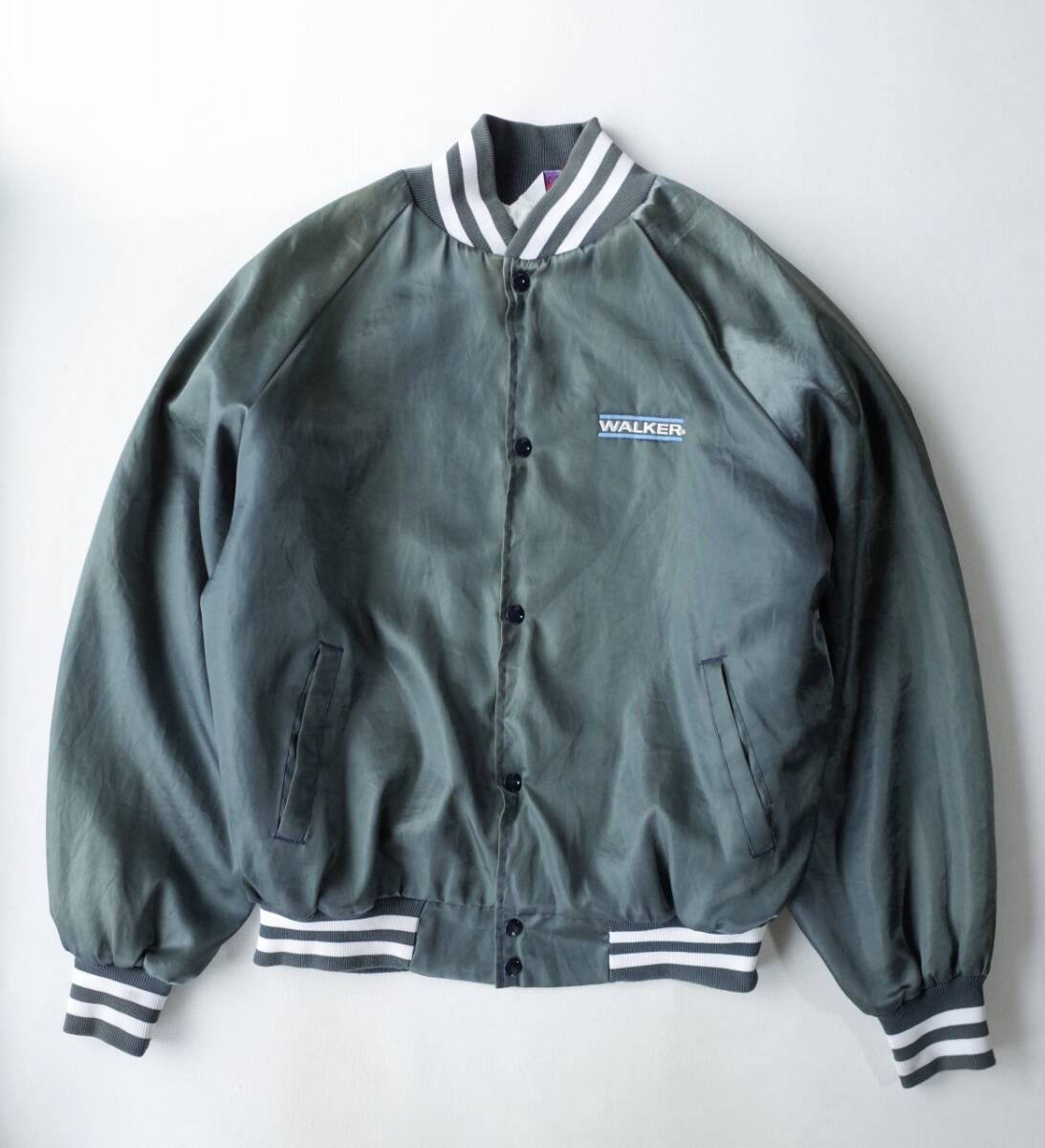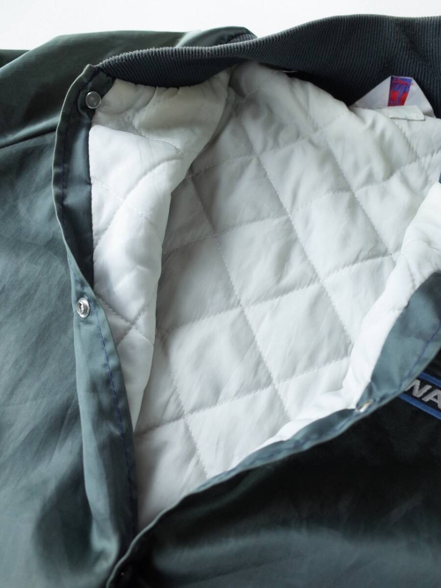 【レア】 80's ビンテージ USA製 光沢サテン 稀少色 (ブルーグリーン) ナイロンジャケット スタジャン XL 裏地キルティング WestArk