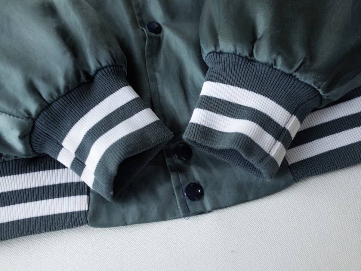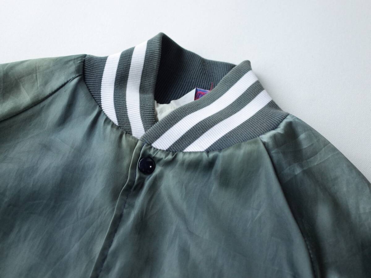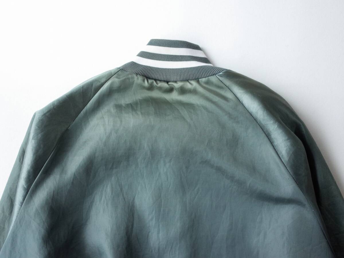 【 80's ビンテージ USA製 光沢サテン 稀少色 (ブルーグリーン) ナイロンジャケット スタジャン 】