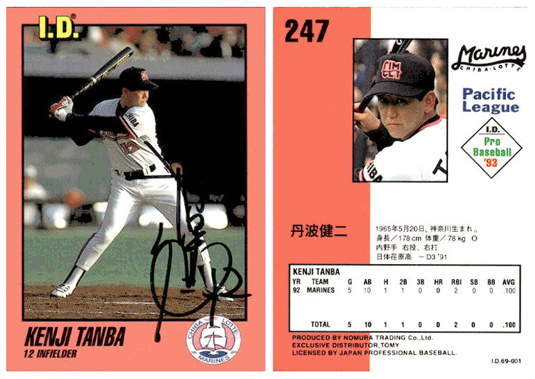 1993 ID 千葉ロッテマリーンズ #12 丹波健ニ 内野手 サインカード