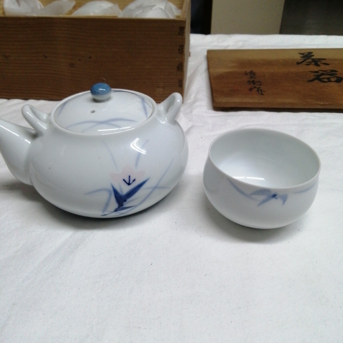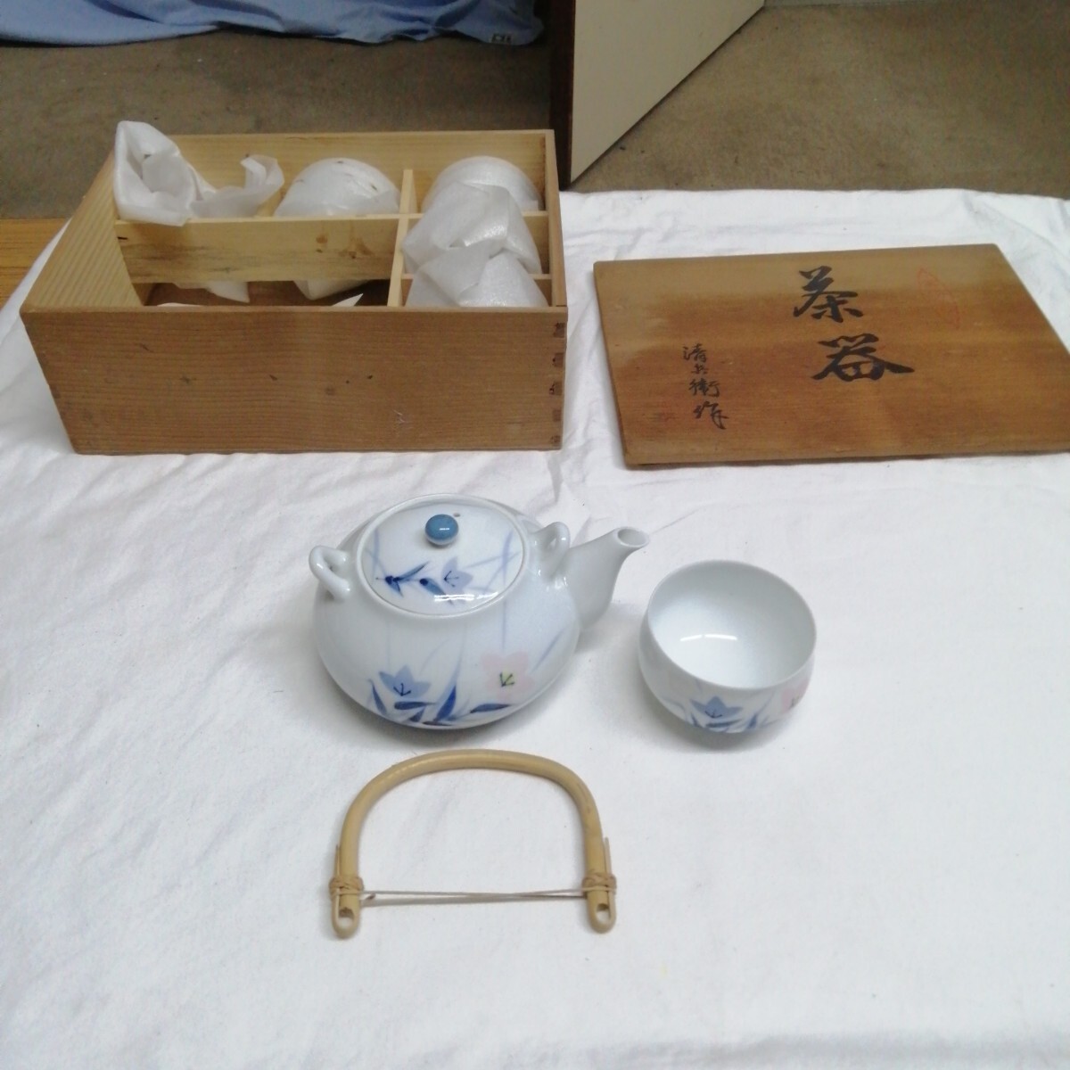 肥前焼 茶器 清兵衛 湯呑 急須 未使用保管品 花柄