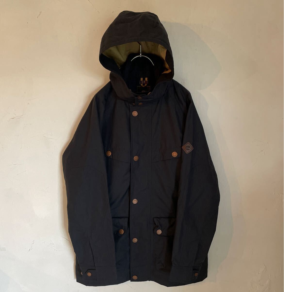 光沢感があり張りのあるティンバーランドのマウンテンパーカー フード付きワークジャケットになります。深いネイビー。S~ Mサイズぐらい。ラグランスリーブで肩のおちるサイズ感フォルムの良い品です。男女問わず着て頂けるかと思います。 アウトドア キャンプにいかがですか?