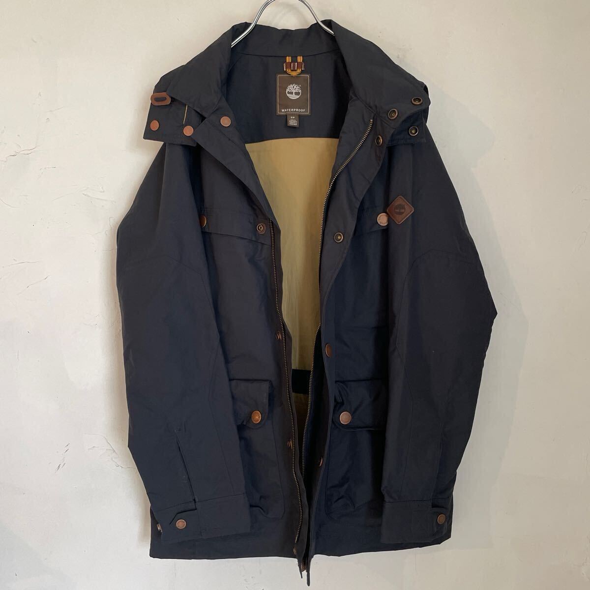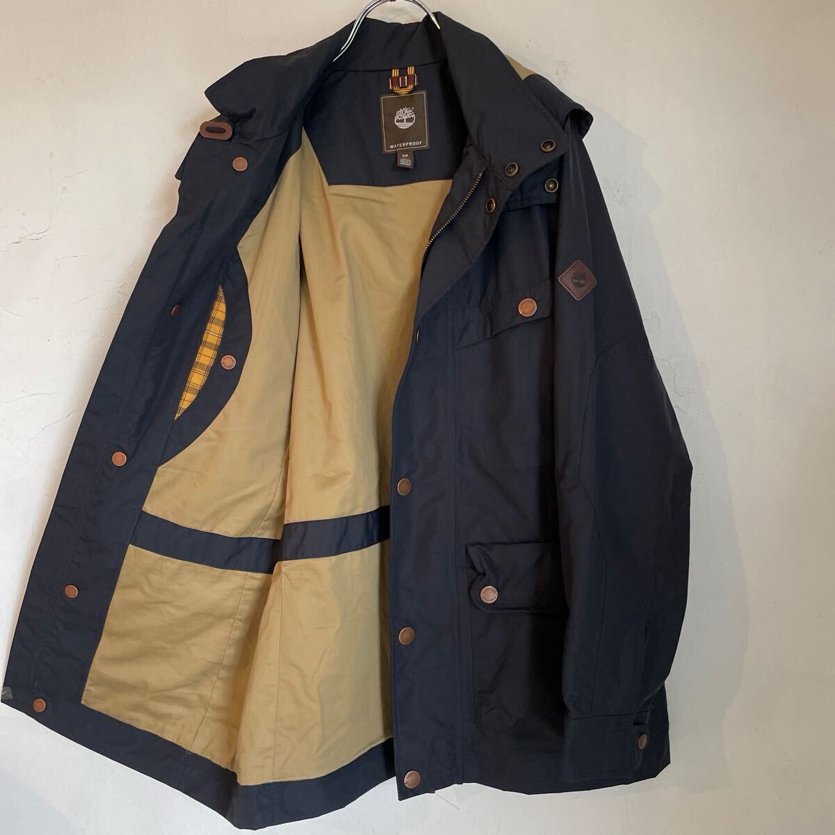 ティンバーランド マウンテンパーカー フード付きワークジャケット ナイロン100% ネイビー Mサイズ アウトドア キャンプ メンズ古着になります。