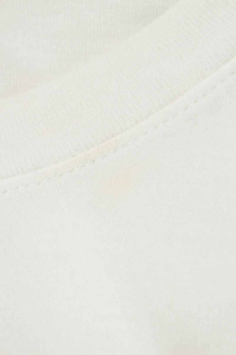 | 状態備考 | フロント首元、右下部、バック身頃所々等に汚れがあります 全体的に毛羽立ち、若干の黄ばみがあります 前後裾プリント部分にひび割れがあります |