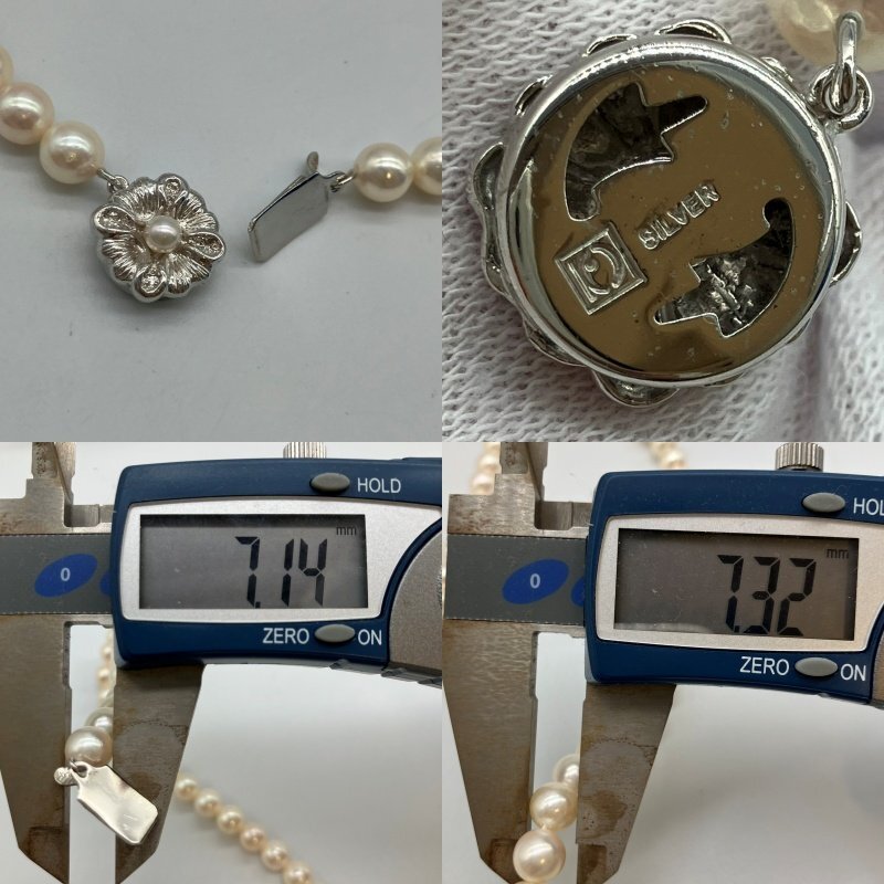 ◆ パールセット ネックレス 7.14mm-7.32mm イヤリング 7.06mm K14 アクセサリー 【SILVER刻印あり】 MB ai KBS