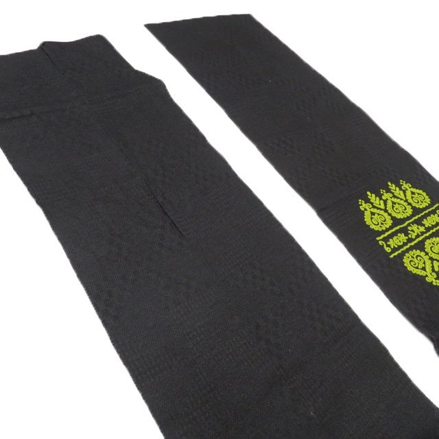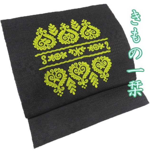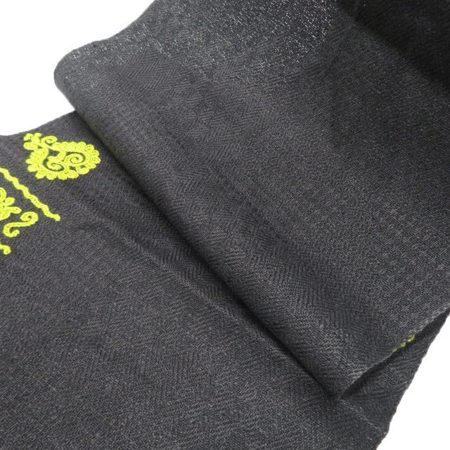 サイズ 380cm x 31cm 素材 正絹 商品ランク B ●お色 黒色 黄緑色 菱屋善兵衛を屋号とする木野織物がネクストブランドとして立ち上げた【一栞】。 創業200年を超える伝統の菱屋善兵衛に対して、一栞は次世代を見据えた革新的な着物スタイルを発信しています。 一味違う洒落味豊かな逸品、是非お手元にお迎えくださいませ。 使用感の少ない美しいお品物です。 裏地のない、松葉仕立てのお品物です。 一部商品は実店舗・他サイトでも並行して販売しておりますので売り切れの際はご了承ください。 その他多数販売中 oya | ||||||