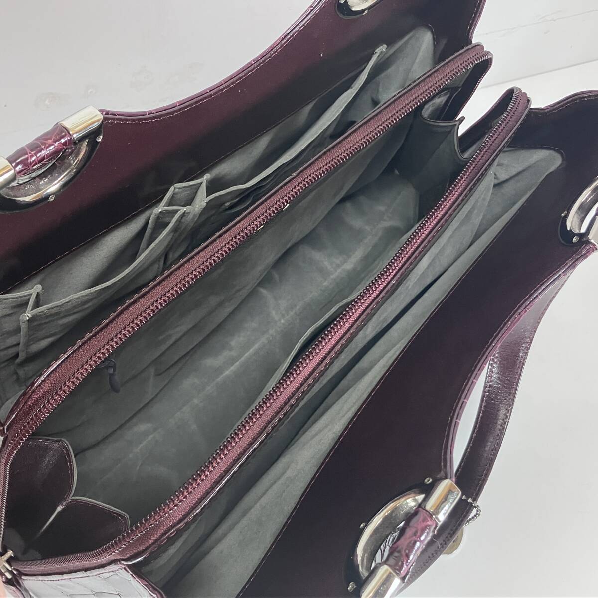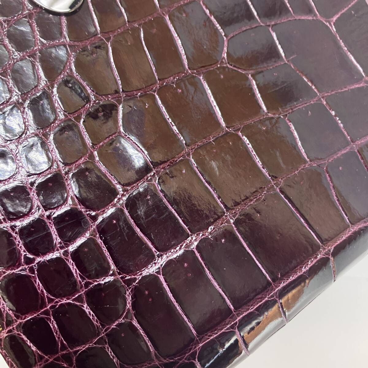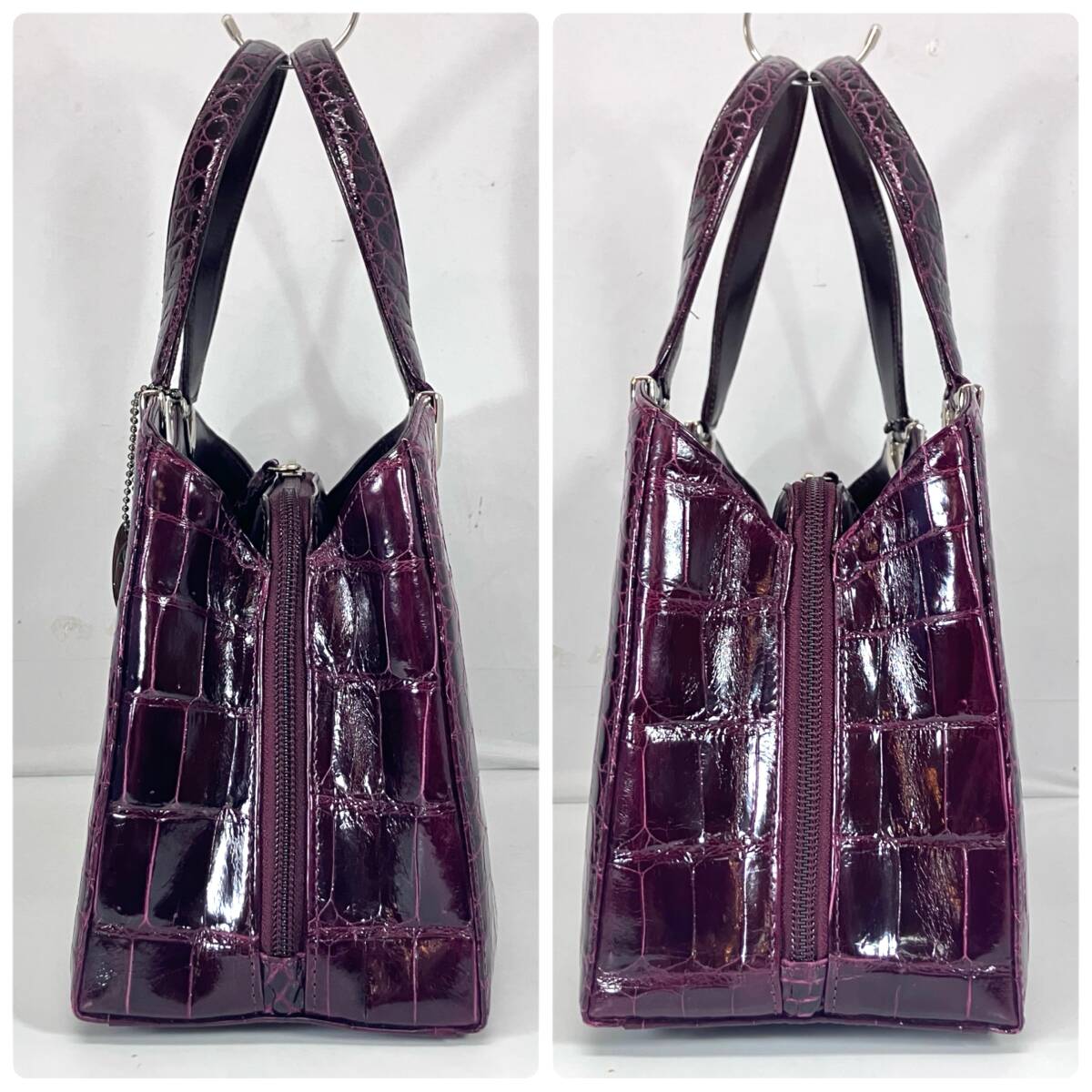志[美品]JRAタグ付 sanpo/三宝 シャイニングクロコダイル ハンドバッグ ワニ革 紫 パープル系 袋付 エキゾチック レザー サンポー(I)0920D