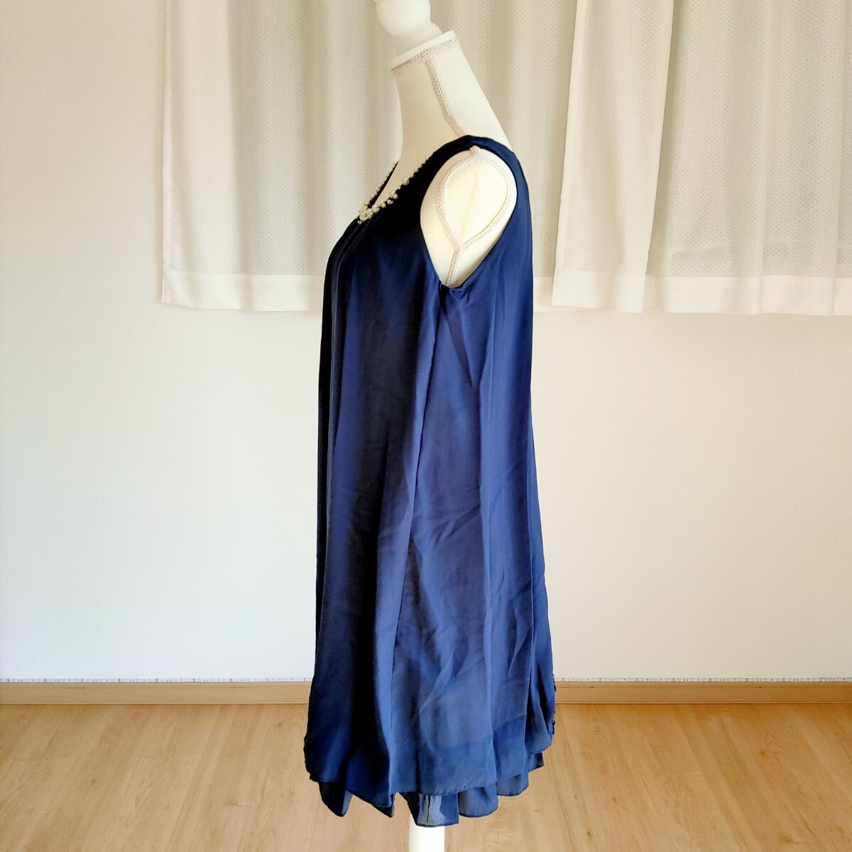 バックデザイン部分にバラ生地を使用したドレス。見た目はシンプルですが、後ろ姿は華やかで可愛いデザインです。結婚式・二次会・パーティにおすすめのドレスです。裏地有り