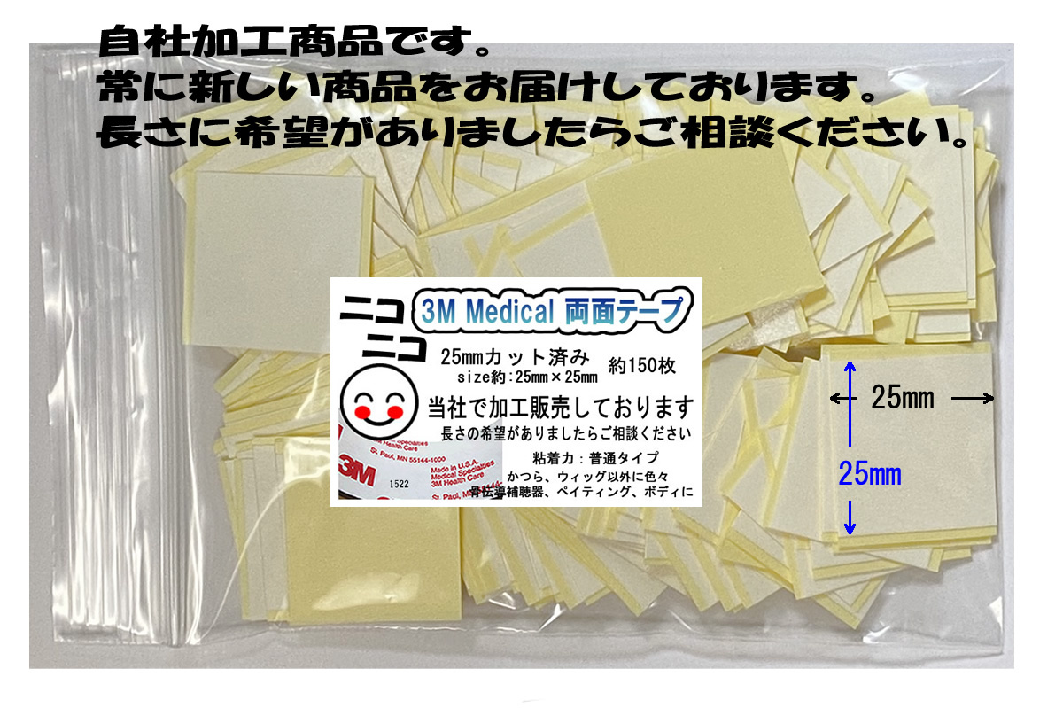 《ニコニコ》 25mmカット 3M両面テープ1522 ISO-10993に基づく、広範囲な安全性が確認されてます。 ●細胞毒性試験 ●急性初期皮膚刺激試験 ●皮膚刺激試験 ●皮膚感作性試験等 |